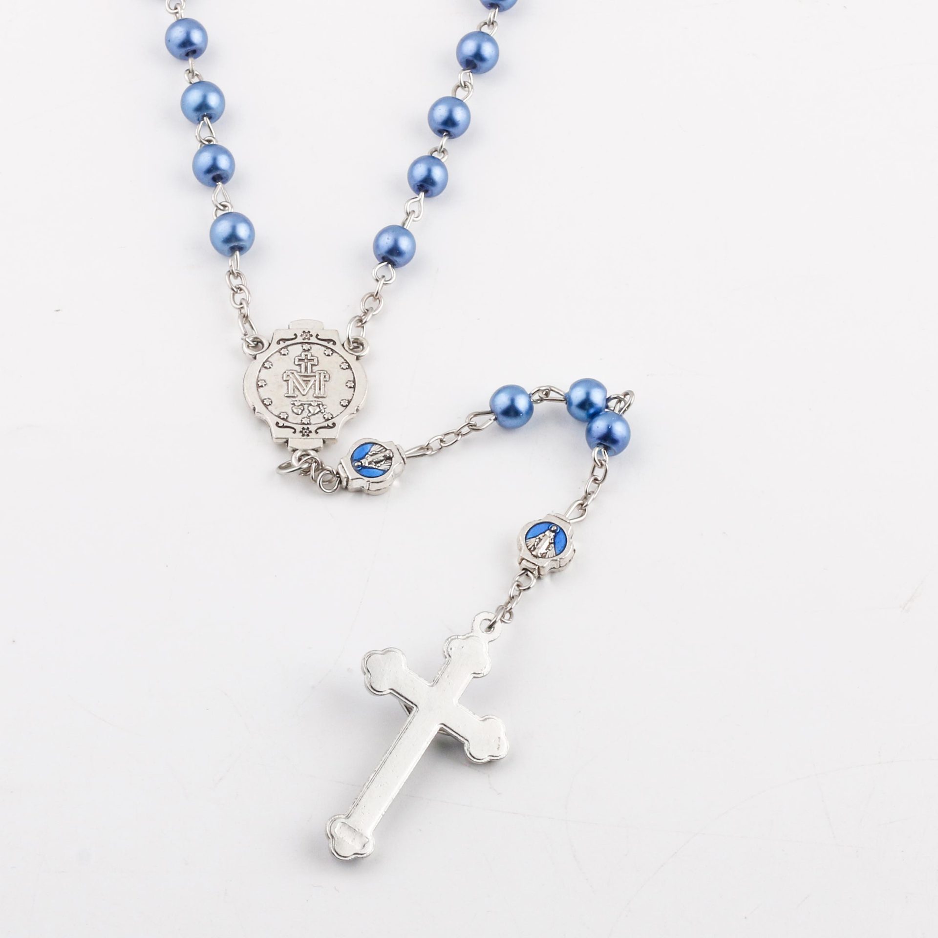 Cross-border Hot Necklace Vintage Royal Blue Alloy Cross Pendant Rosary Beads Beaded Necklace