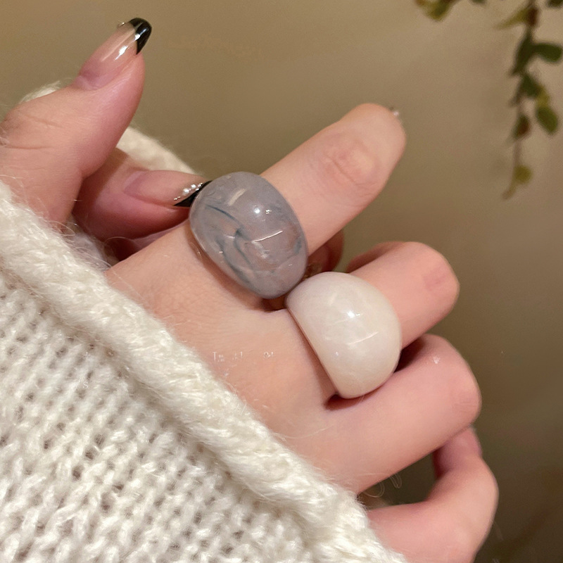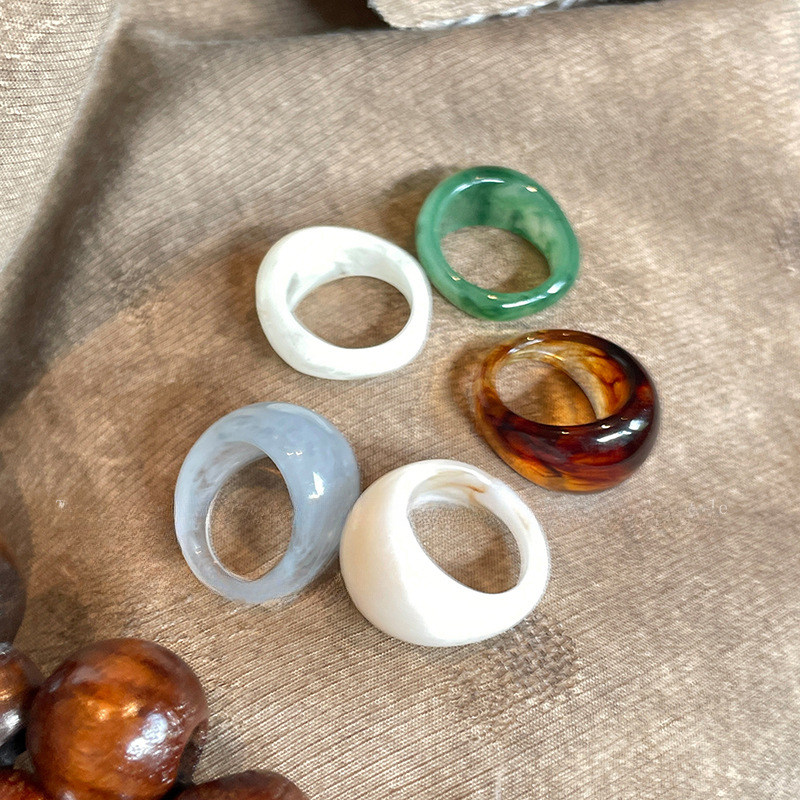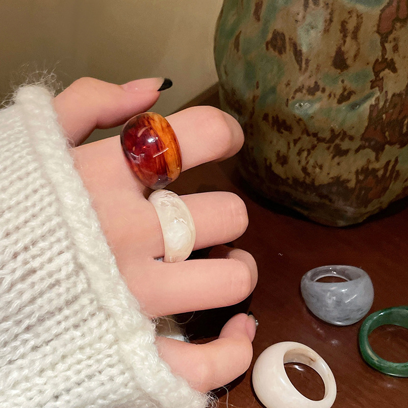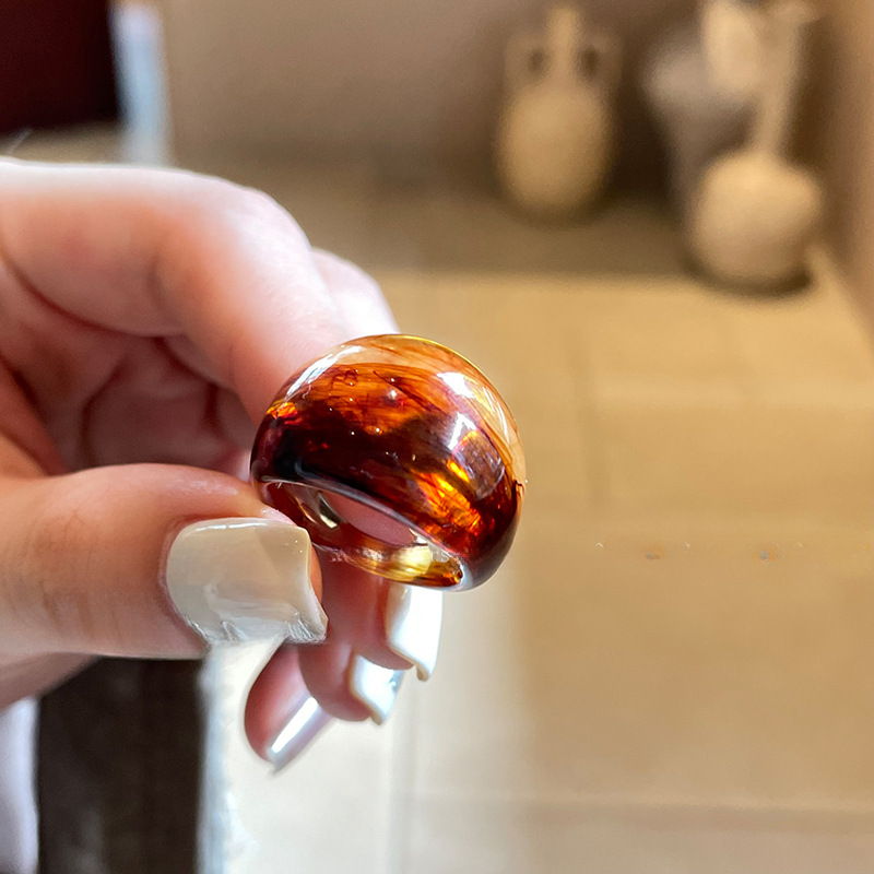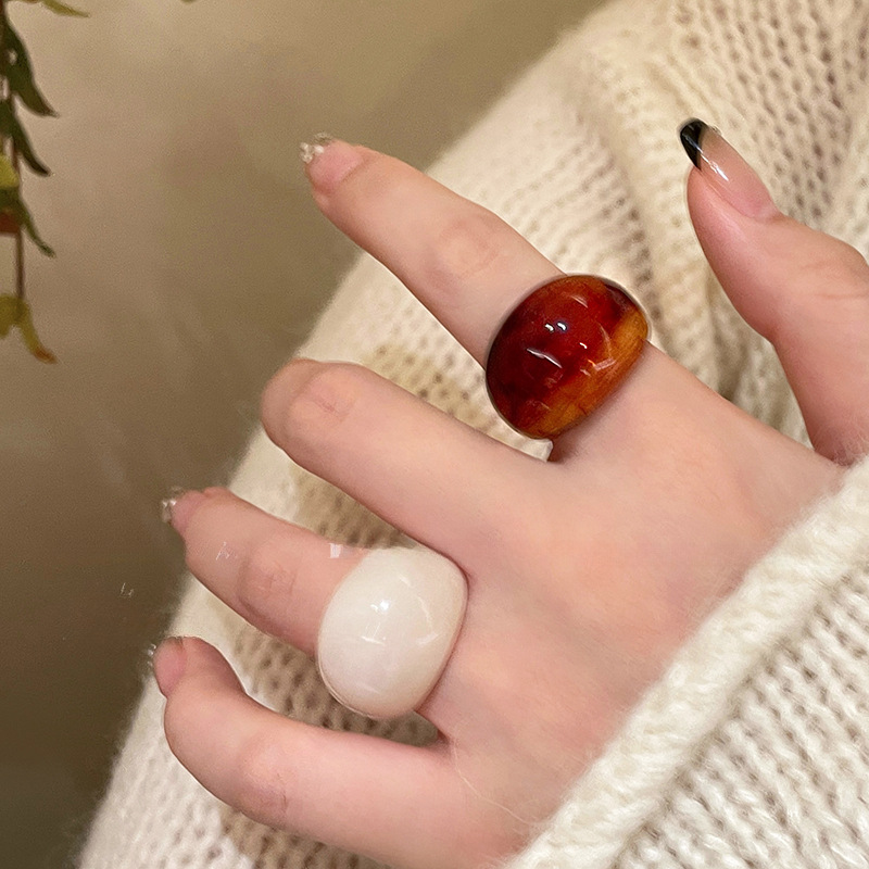 Smob Color Acrylic Resin Ring Female Niche Vintage Amber Distinctive Ring Design Finger Ring