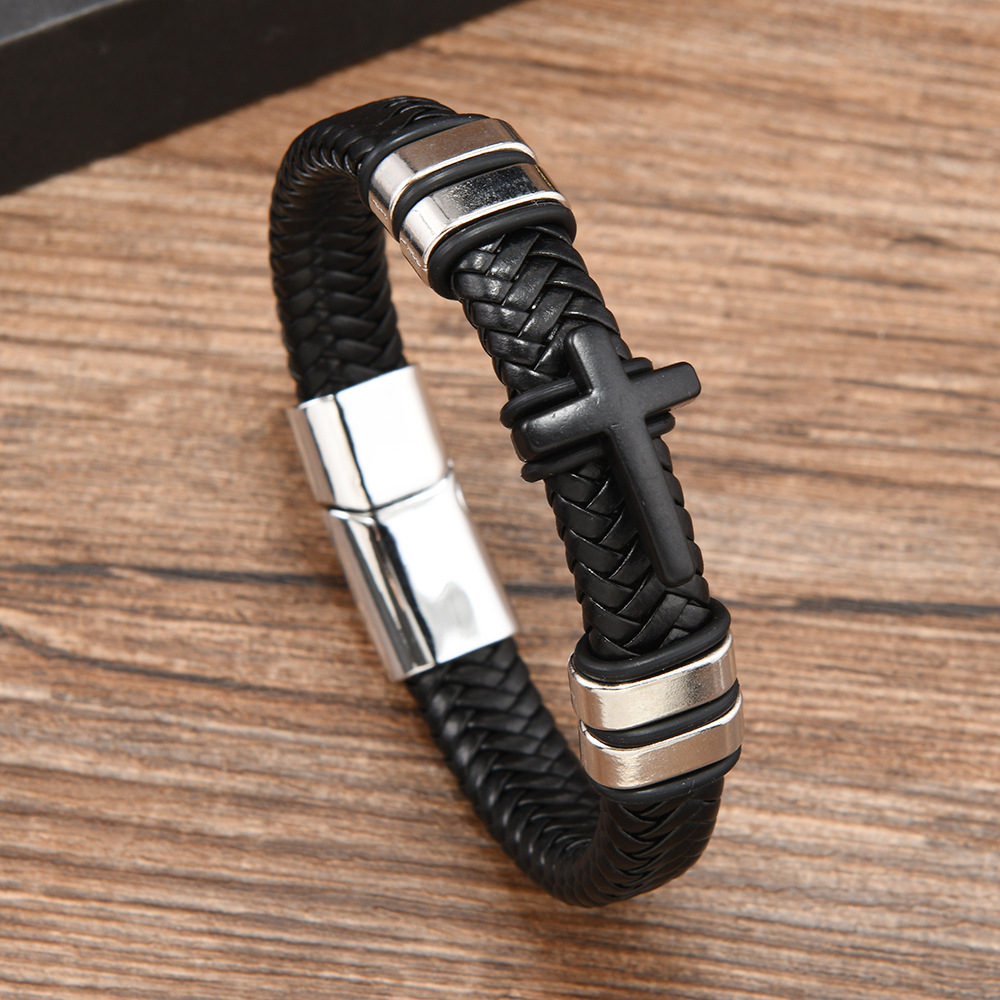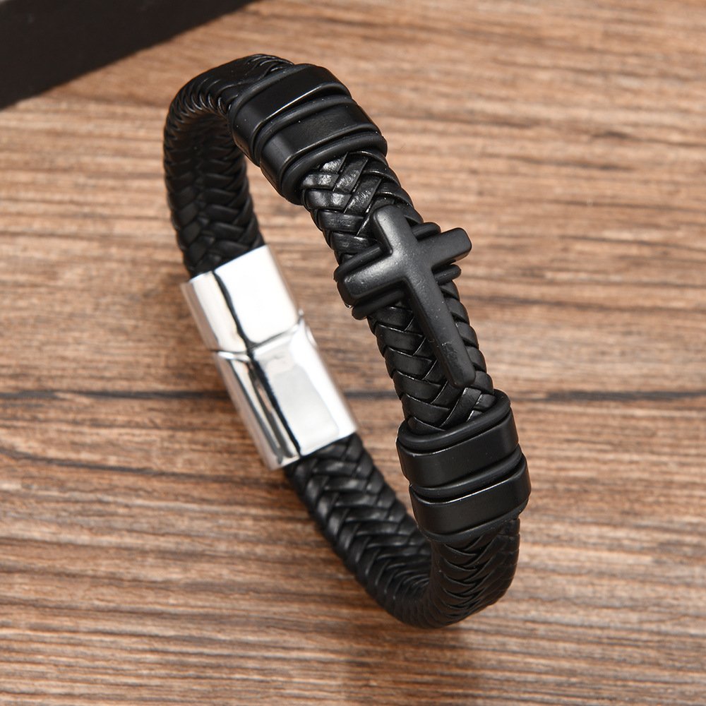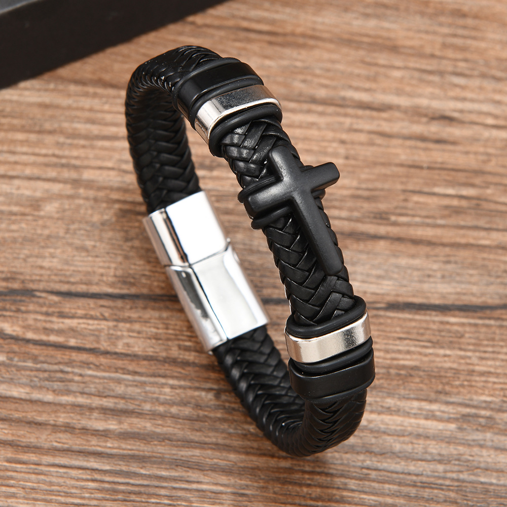 Cross border new leather cross bracelet stainless steel accessories alloy magnetic buckle bracelet punk men wholesale