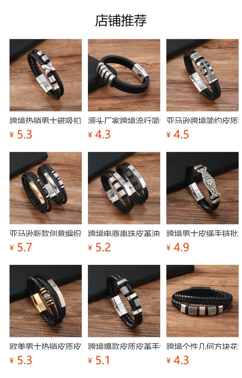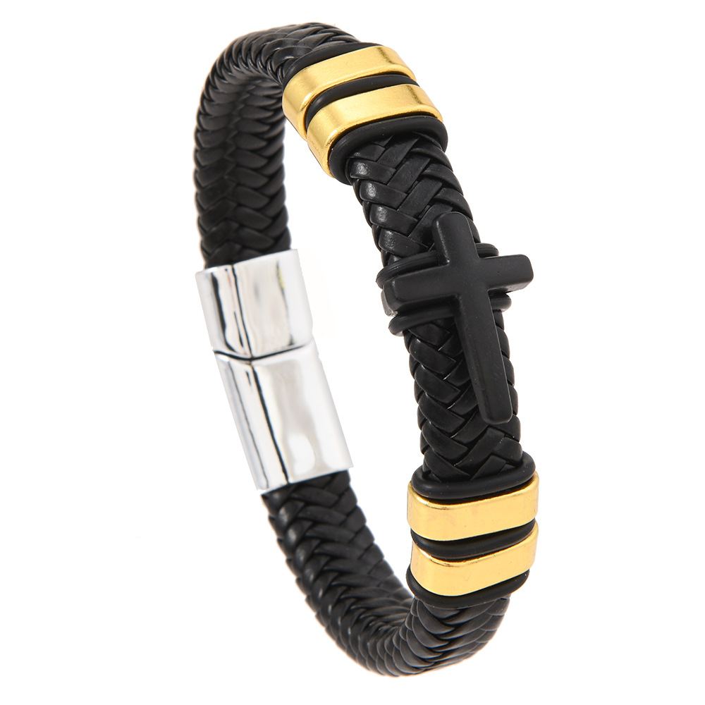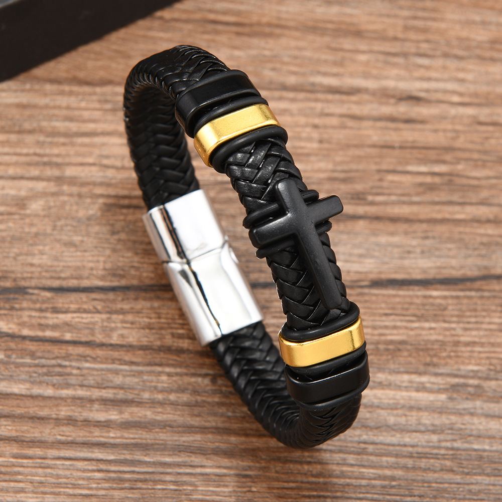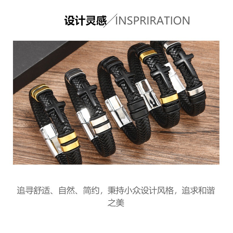 Cross border new leather cross bracelet stainless steel accessories alloy magnetic buckle bracelet punk men wholesale