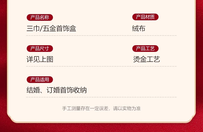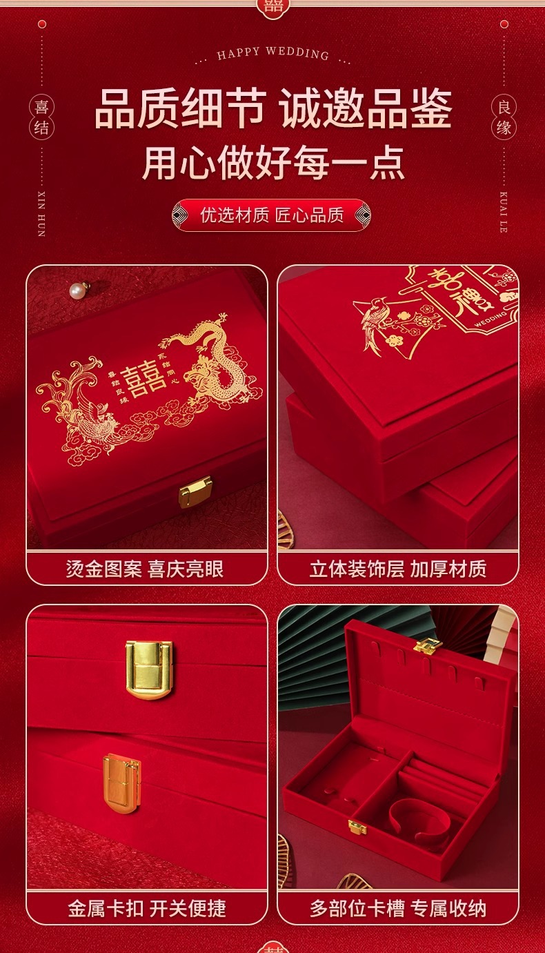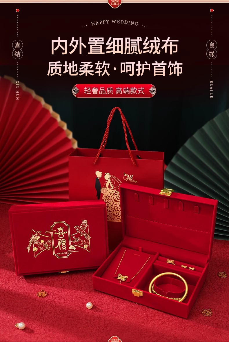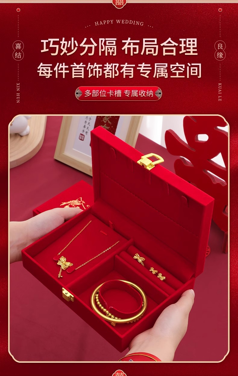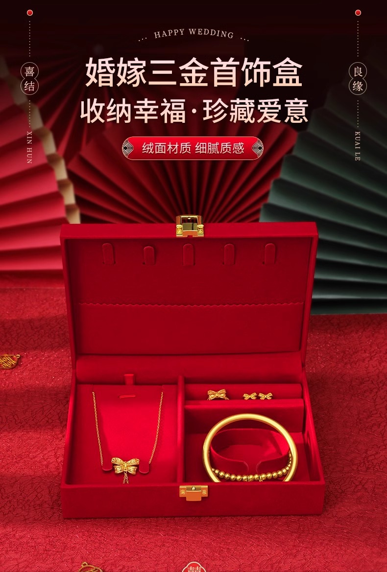 Three gold box engagement gold jewelry box women's gold box wedding hardware jewelry box can put bracelets factory direct sales