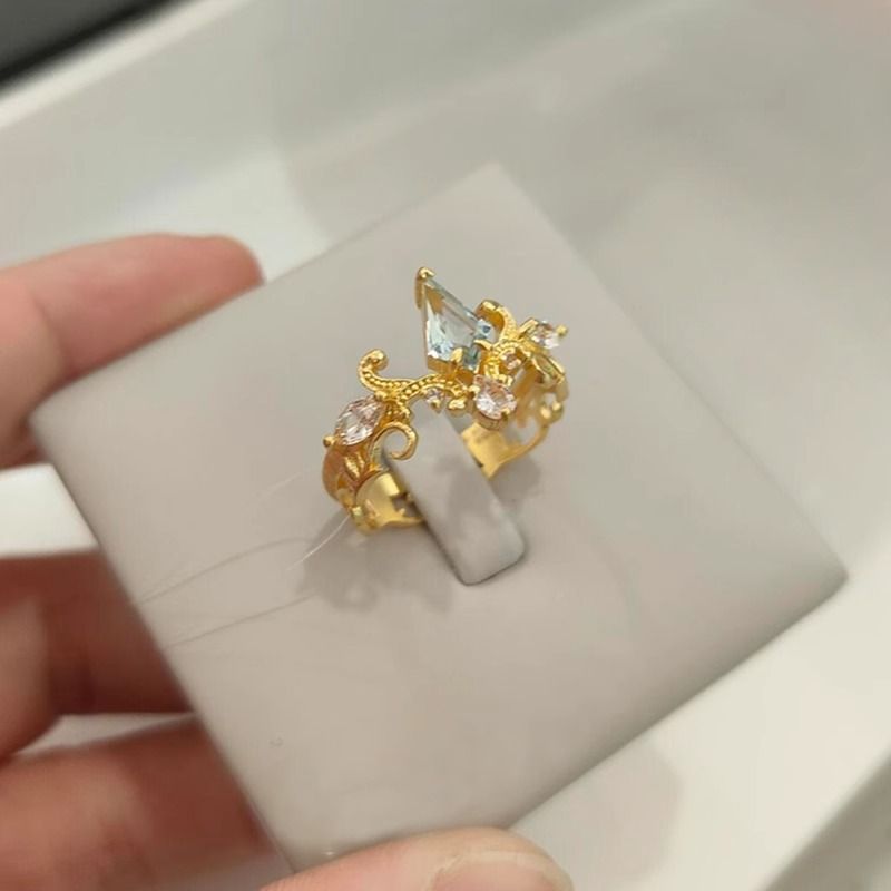 Middle Blue Flash Diamond Cinderella Ring Vintage vintage Court Style Open Finger Ring