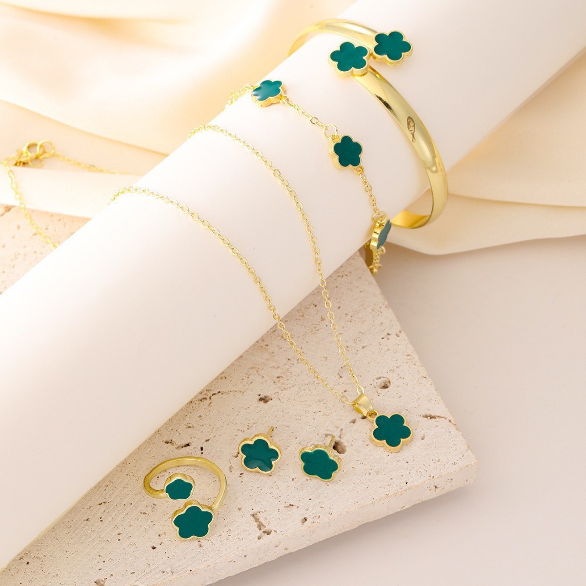 Cross-Border Xiyin Five-Leaf Clover Jewelry Set for Women, Simple and Versatile Petal Necklace, Bracelet, Ring, Earrings, Accessories