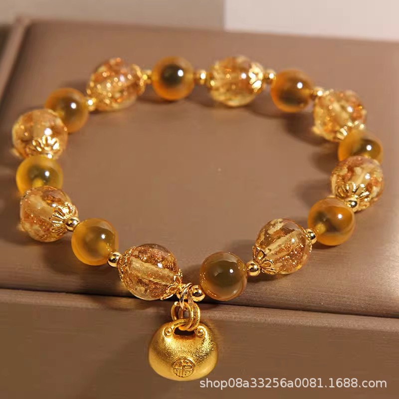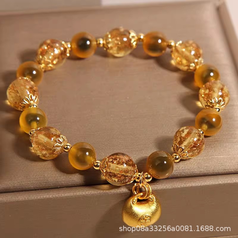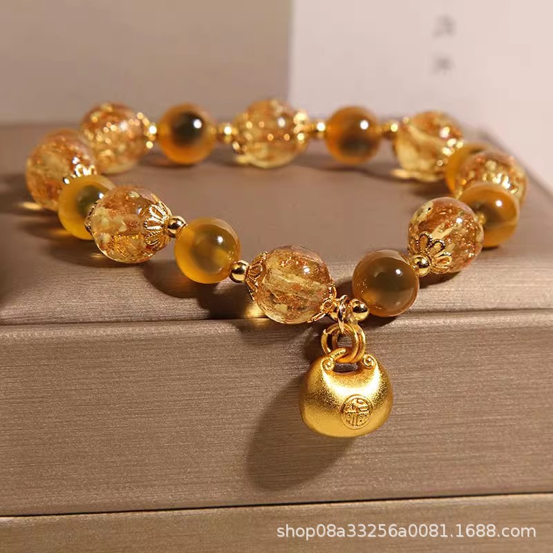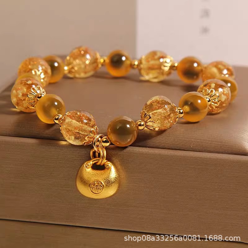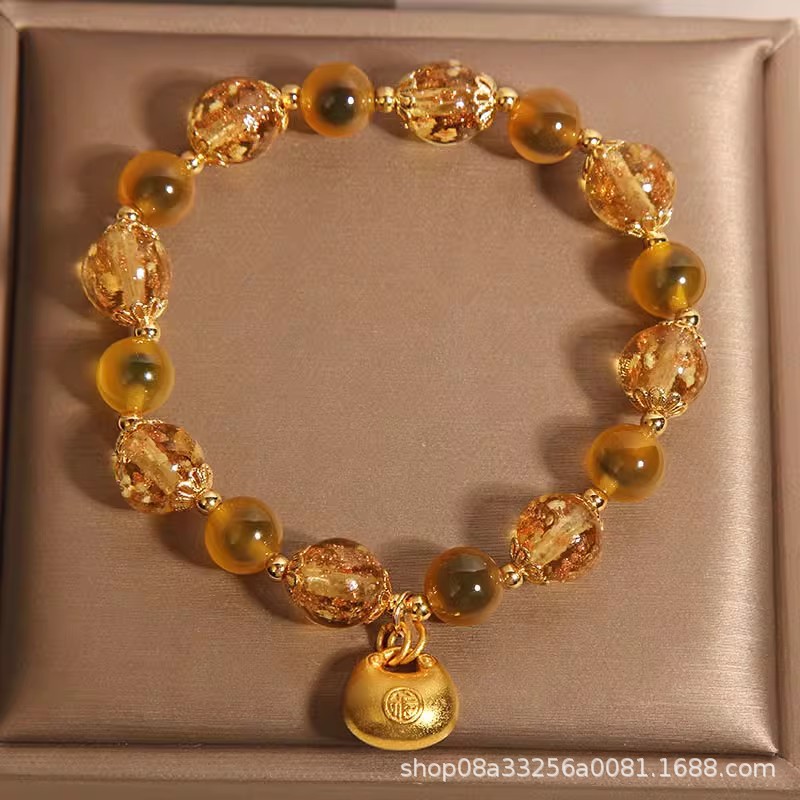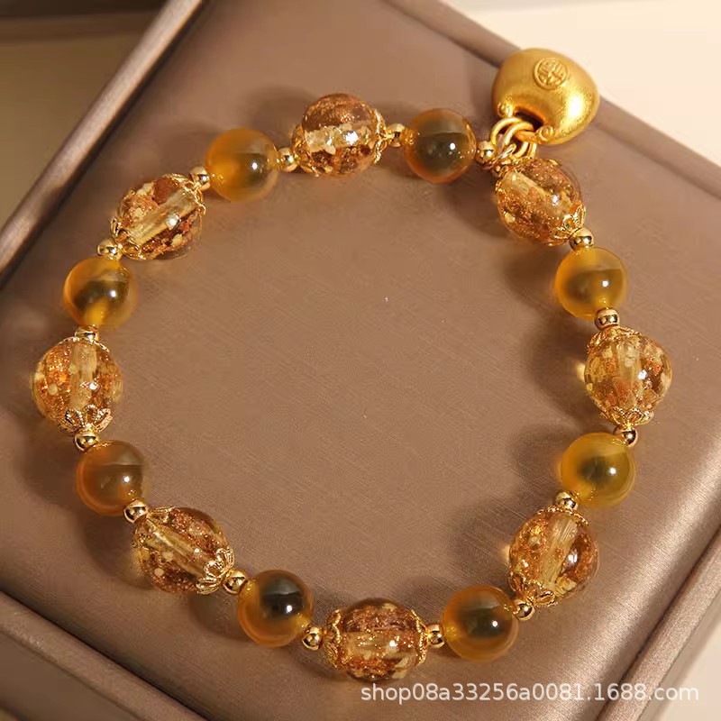 Natural Yellow Sugar Heart Agate Crystal Bracelet for Women, Accessible Luxury Niche, Exquisite Luminous Glass Lucky Bag Bracelet for Besties