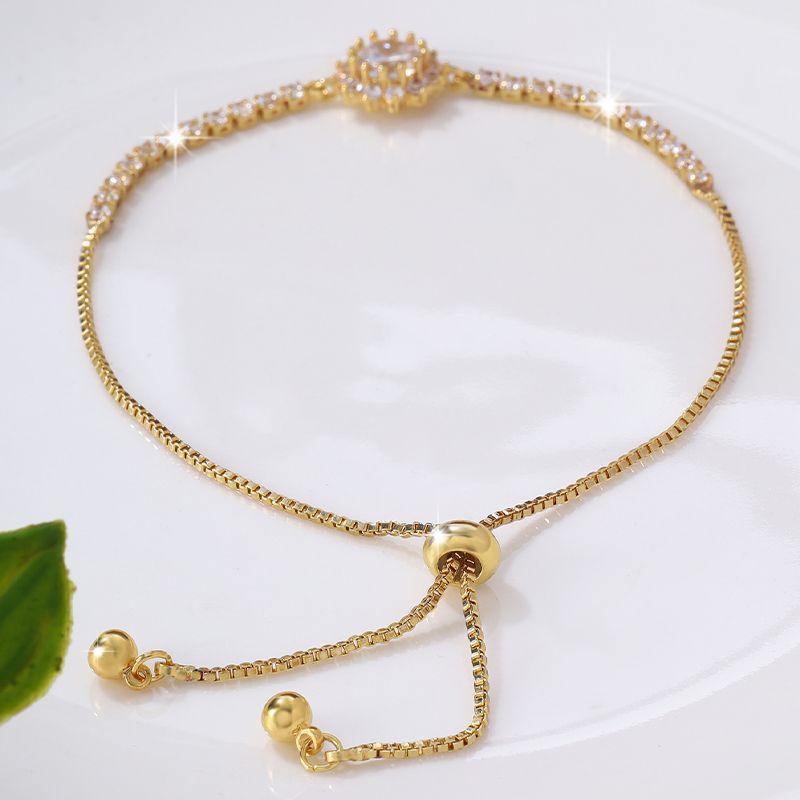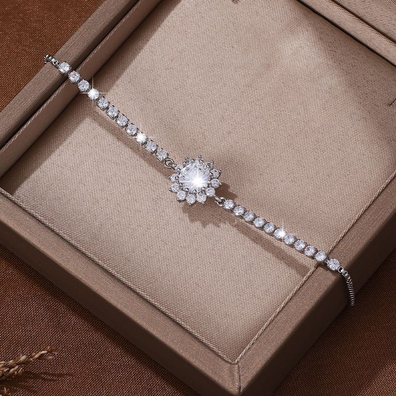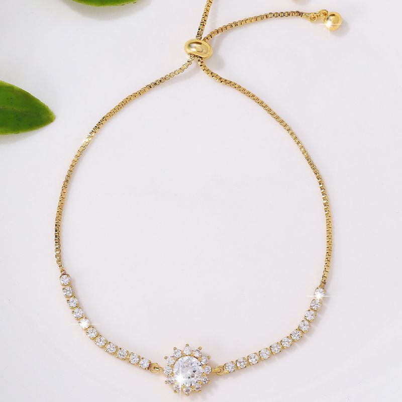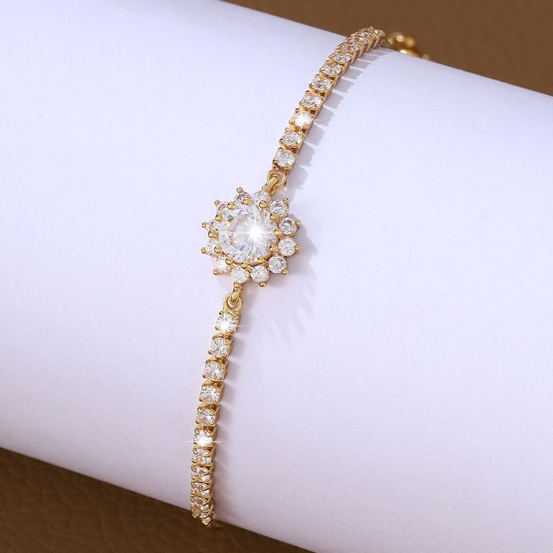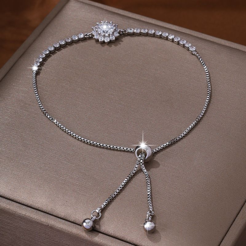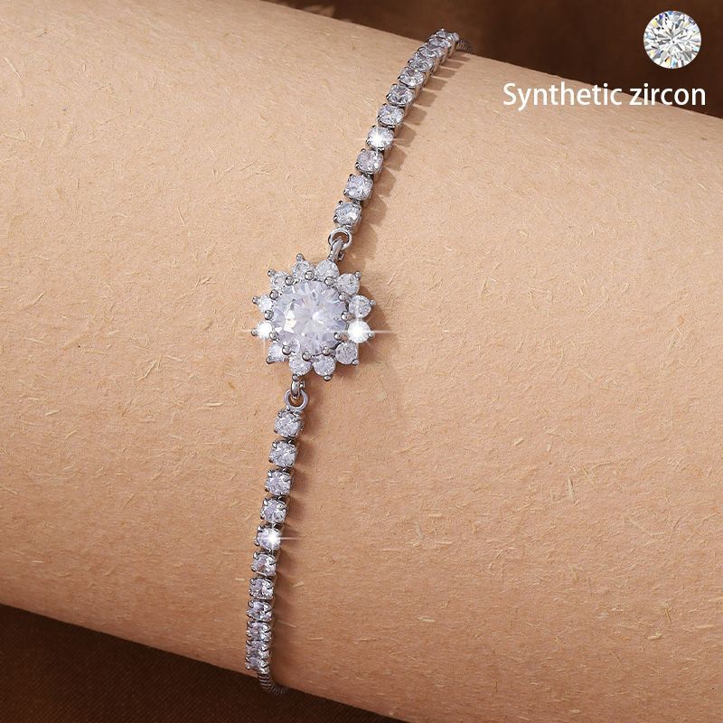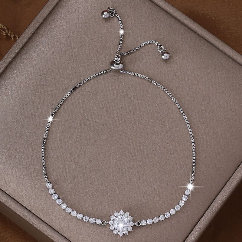 Ins Trendy New Arrival Light Luxury Micro-inlaid Zircon Sunflower Pull Bracelet Women's Japanese-Korean Style Fashion Super Flash Flower Bracelet