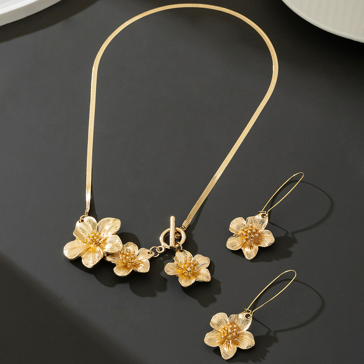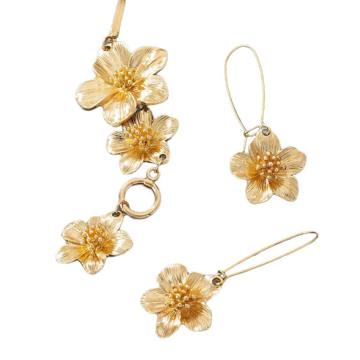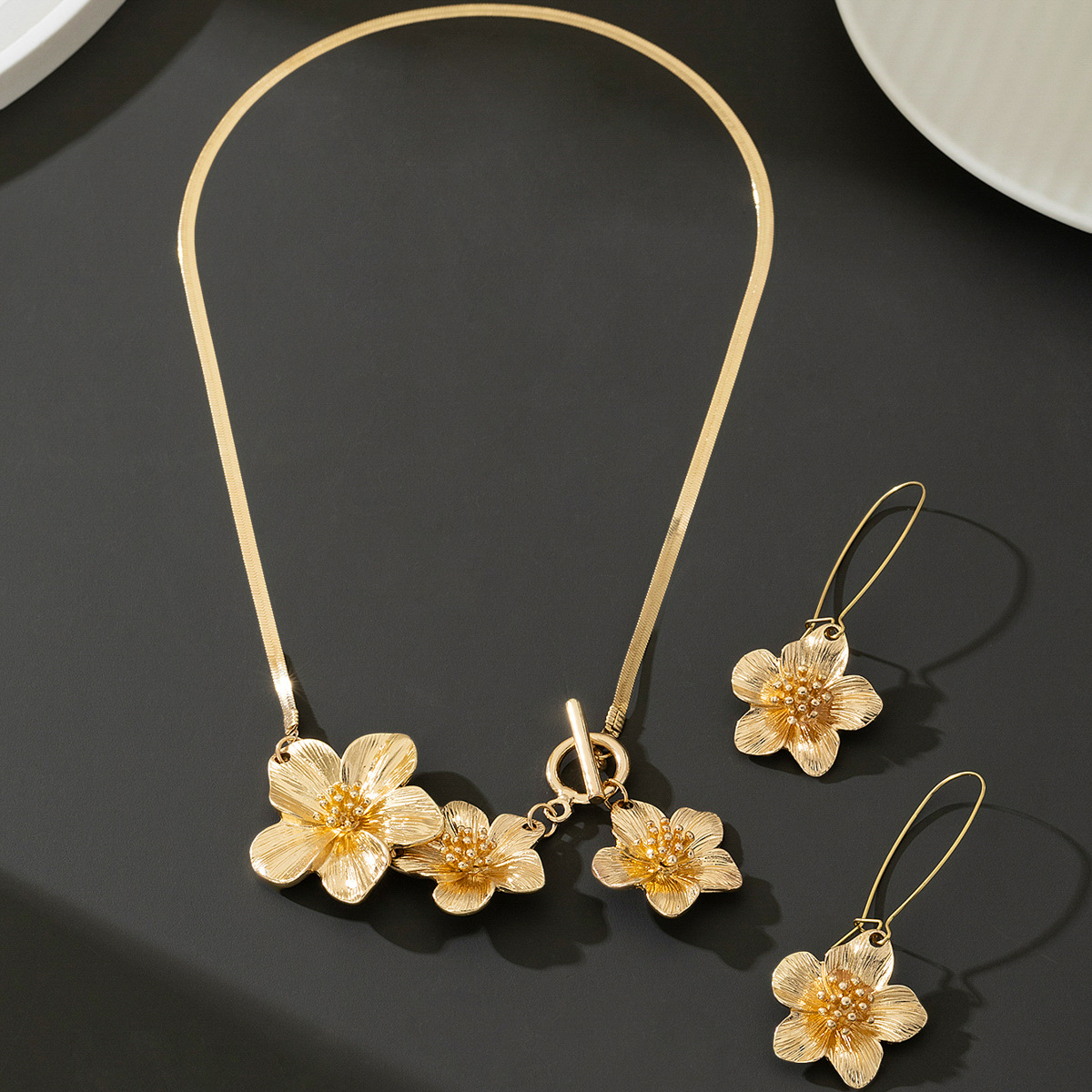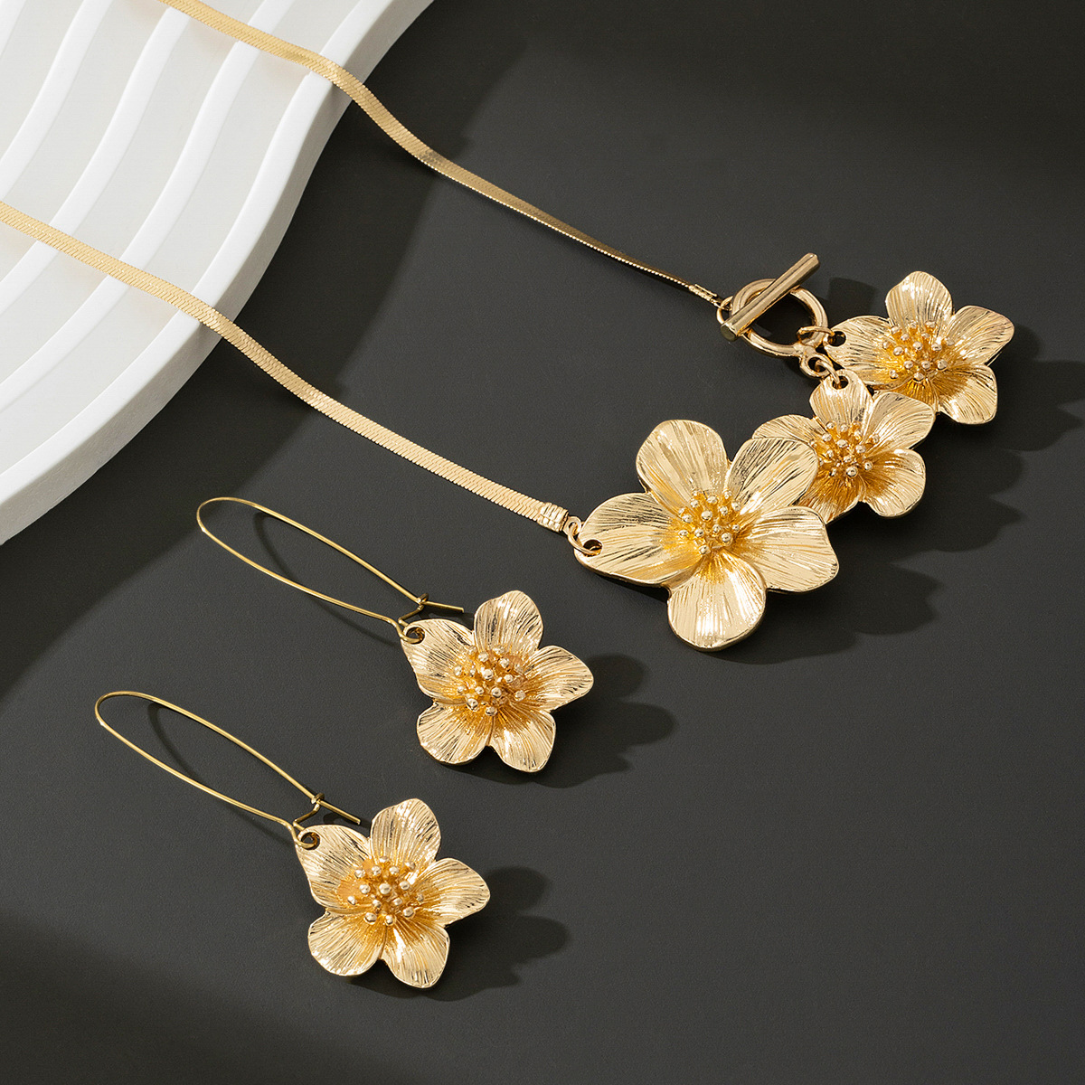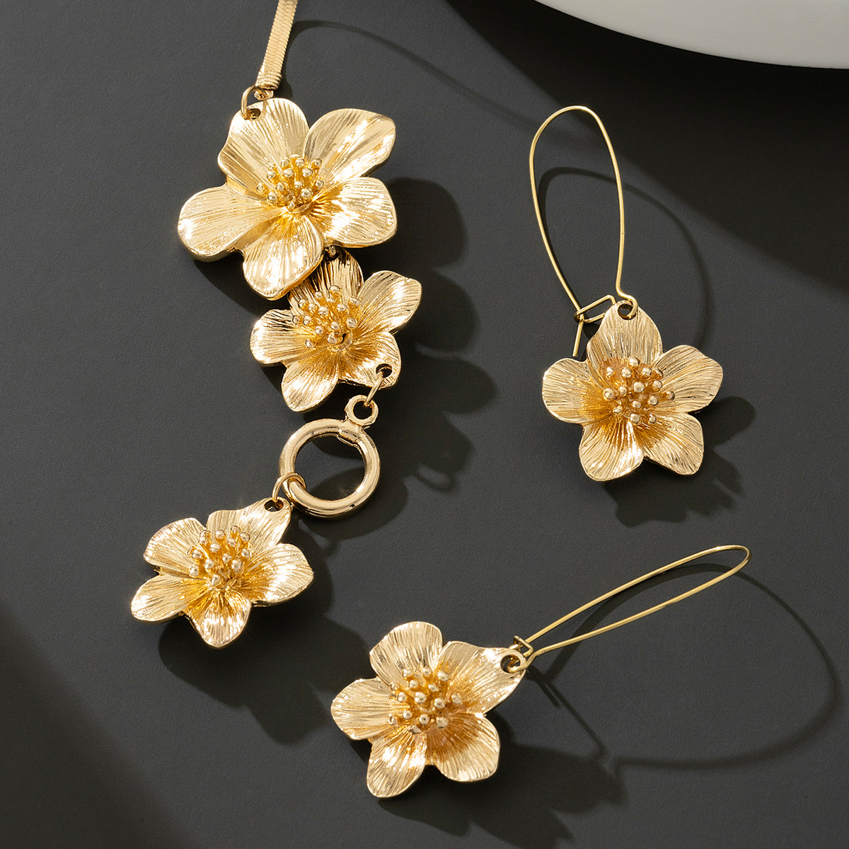 2 European and American Creative Metal Ring-Shaped Flower Earrings, Jewelry Necklace, Bracelet Set, with a Luxurious and High-End Design