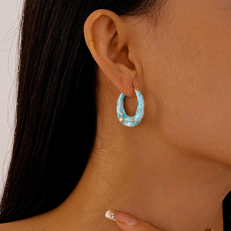 Retro oil dripping diamond irregular geometric earrings European and American simple niche temperament high-end earrings for women