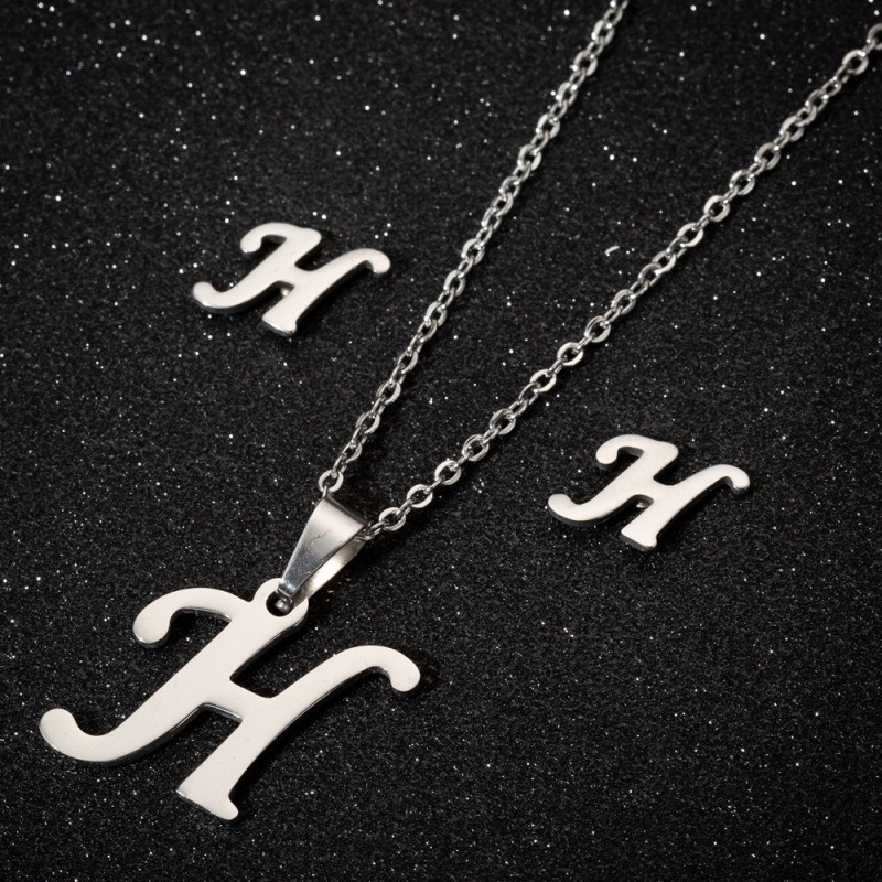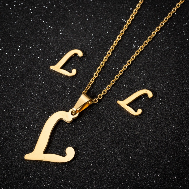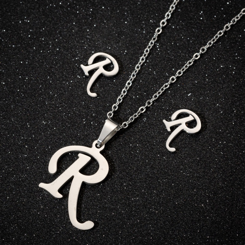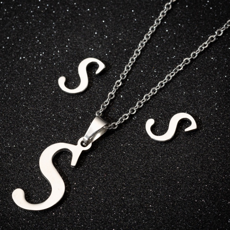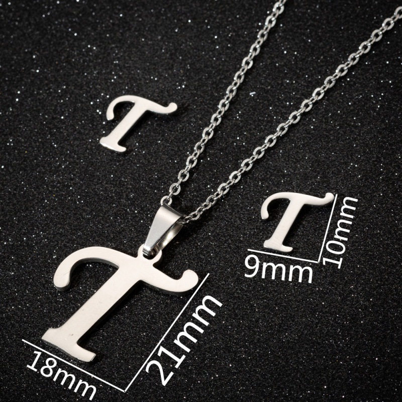 Jewelry stainless steel 26 English letter necklace earrings jewelry suit women fashion personality letter earrings wholesale
