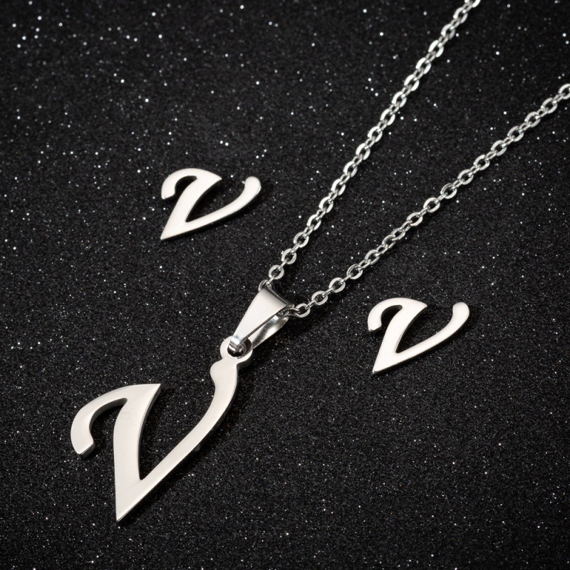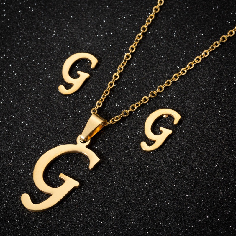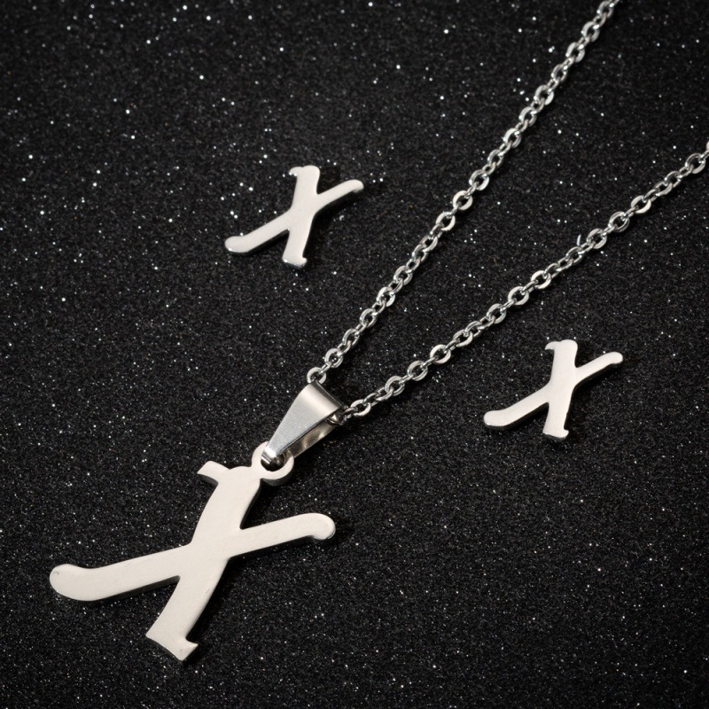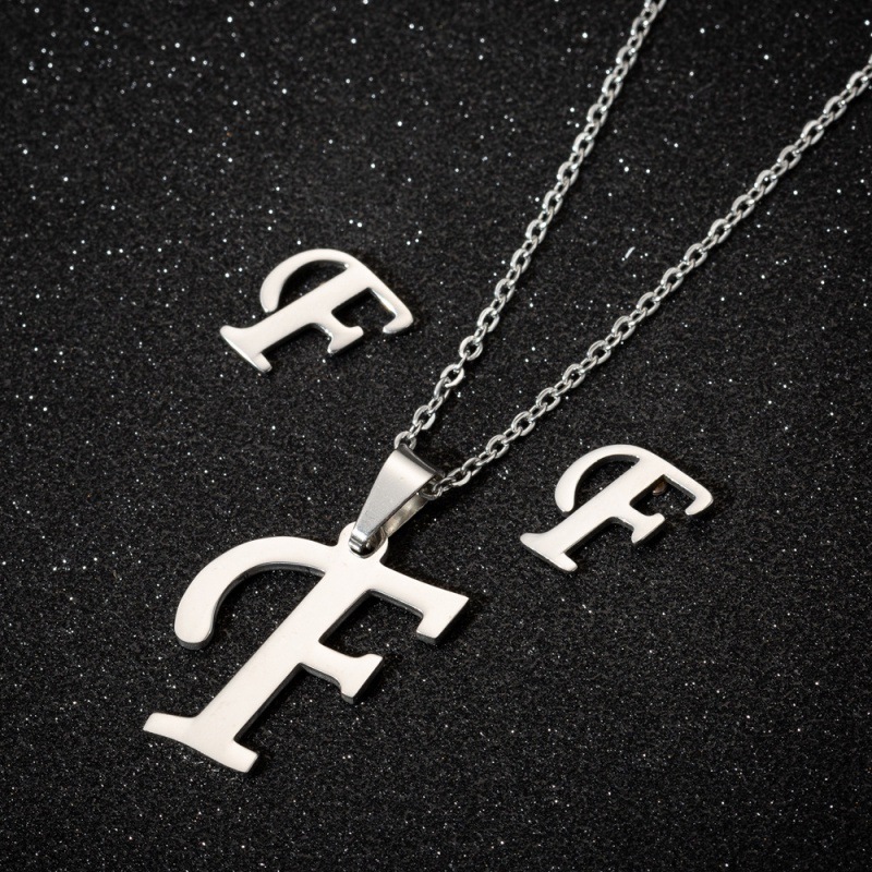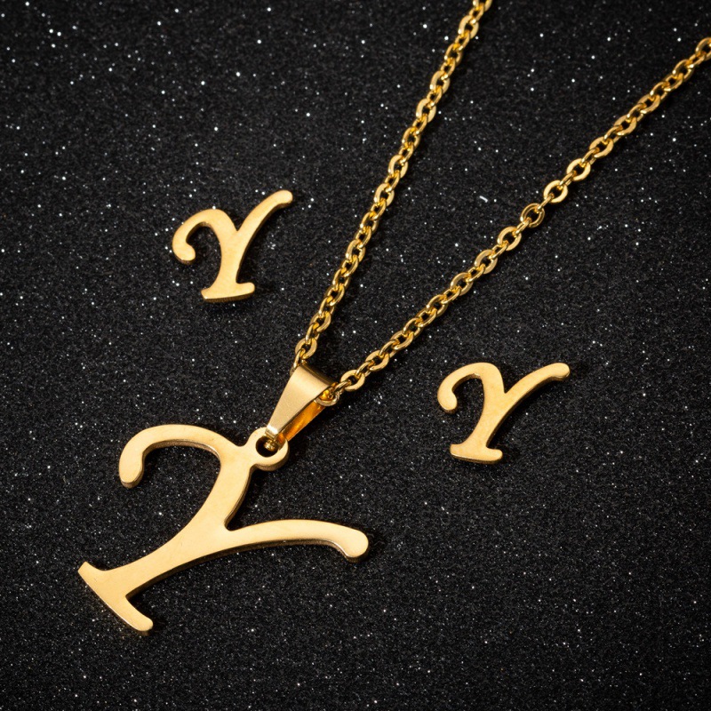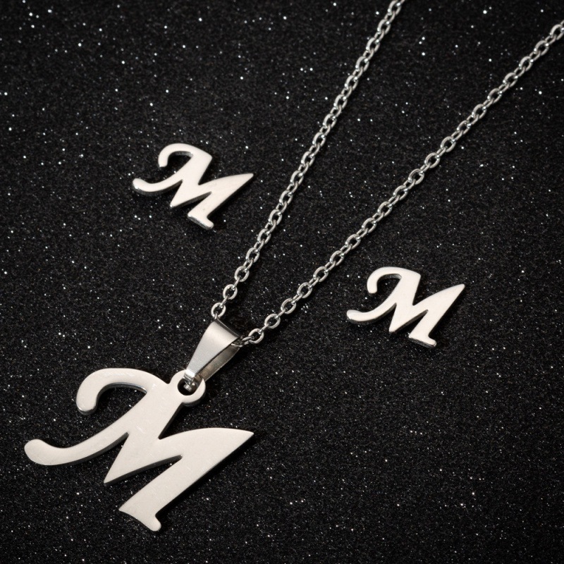 Jewelry stainless steel 26 English letter necklace earrings jewelry suit women fashion personality letter earrings wholesale