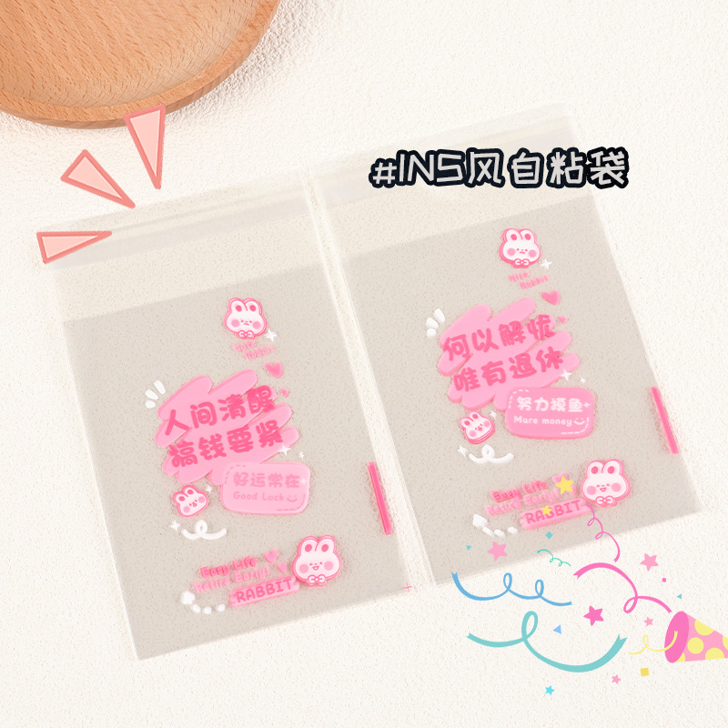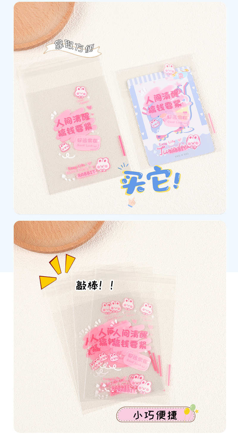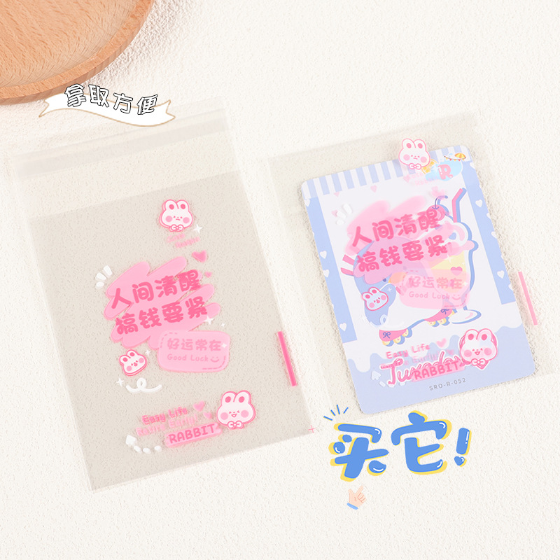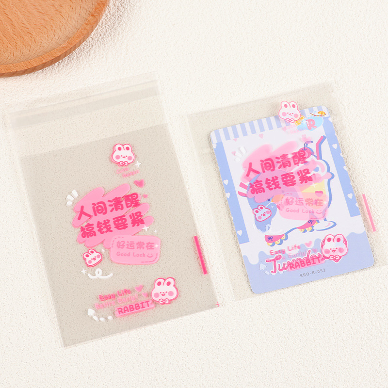 Pink rabbit opp self-sealing bag universal badge card packaging bag jewelry packaging bag blessing gift bag wholesale