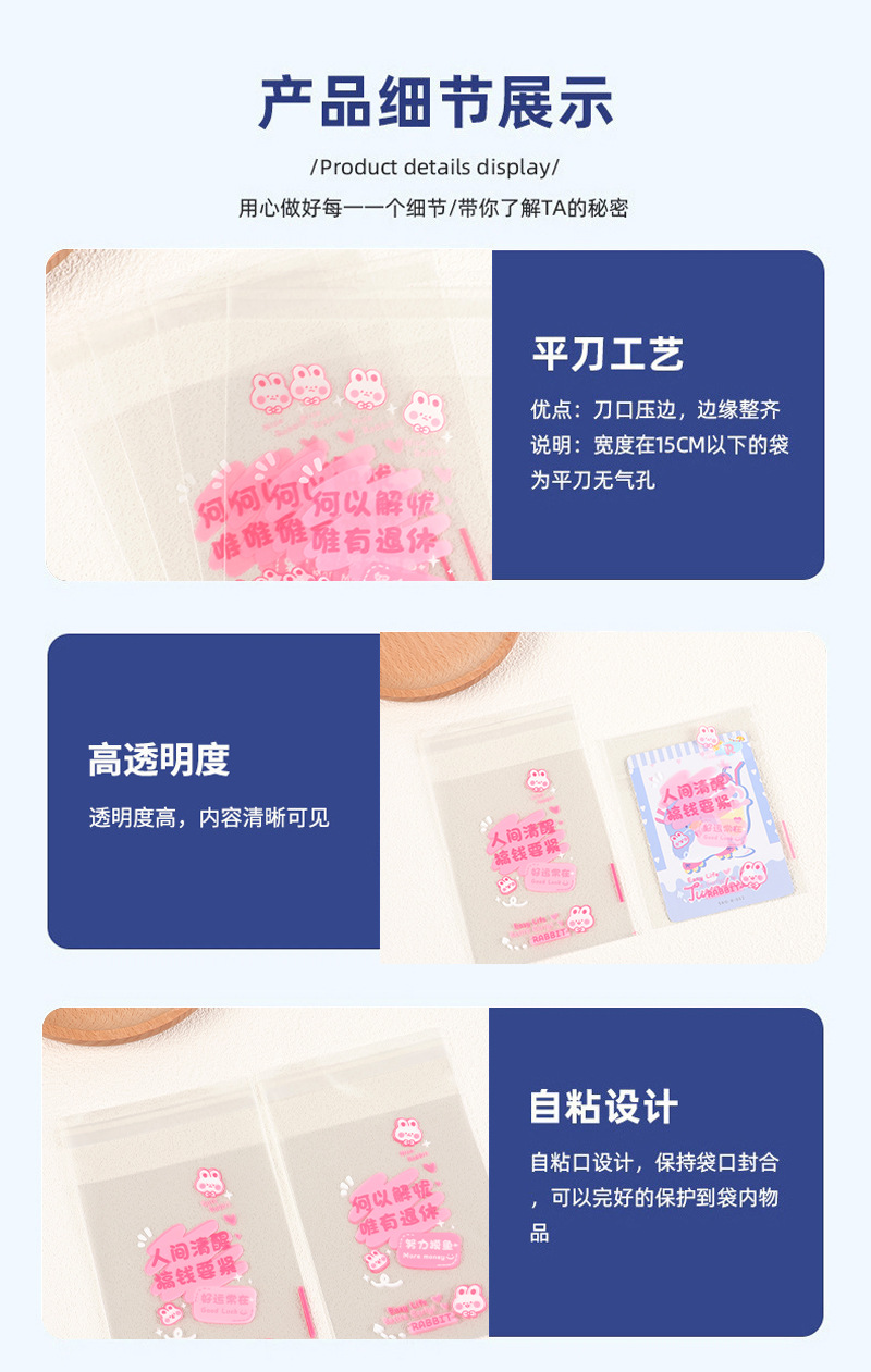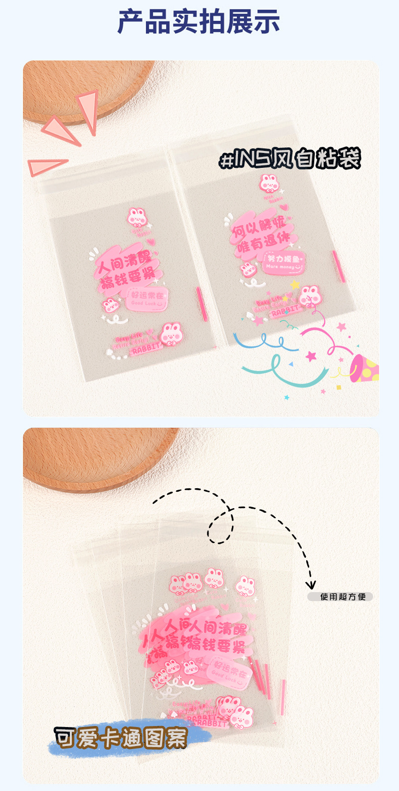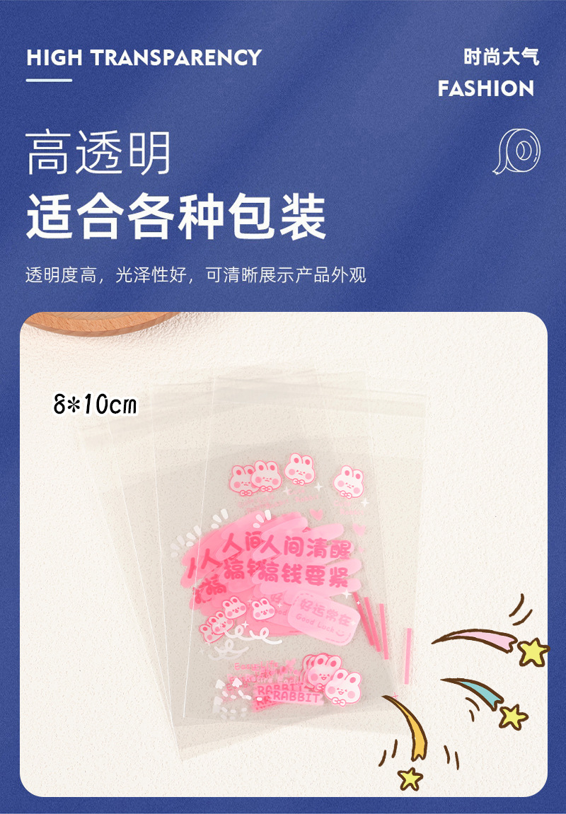 Pink rabbit opp self-sealing bag universal badge card packaging bag jewelry packaging bag blessing gift bag wholesale