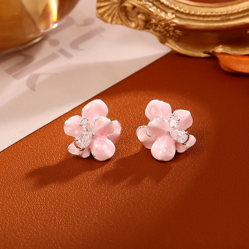 Secret Garden Oil Dropping Flower Earrings Fresh Sweet Fashion High-end Fairy Earrings Gentle All-match Jewelry