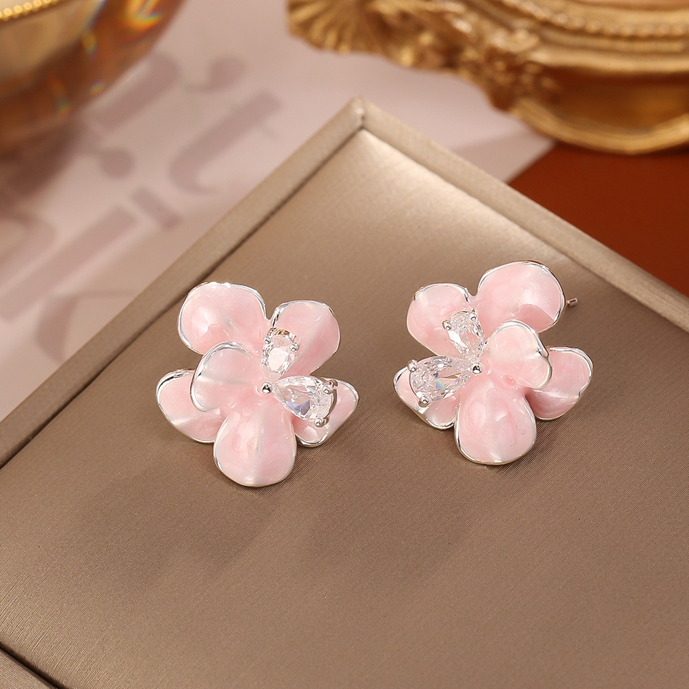 Color: Pink zircon flower stud earrings (s925 silver needle)