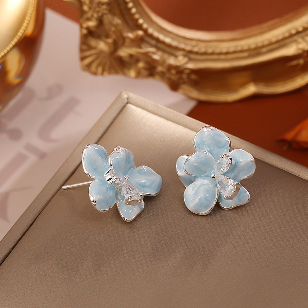 Color: Blue zircon flower stud earrings (s925 silver needle)