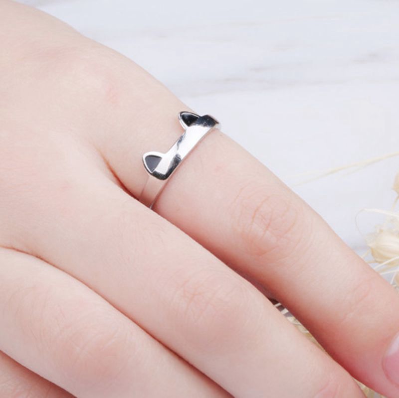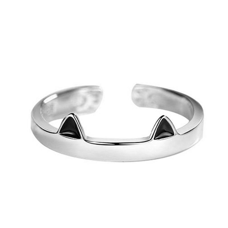 Color: Silver ring black cat ears