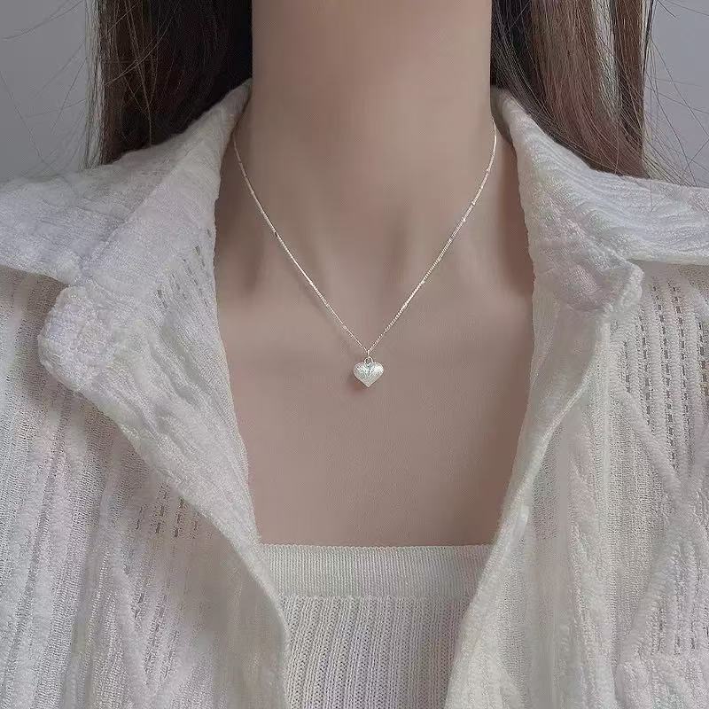 925 Silver Plated Brushed Love Necklace Girls' 2025 New Explosive Clavicle Chain Light Luxury High-end Silver Necklace Chain