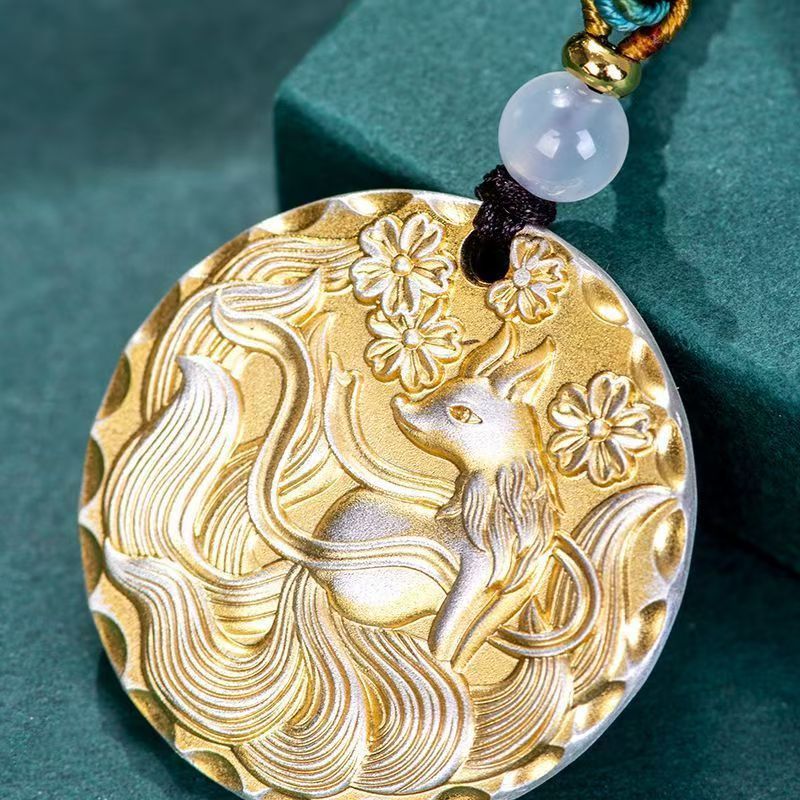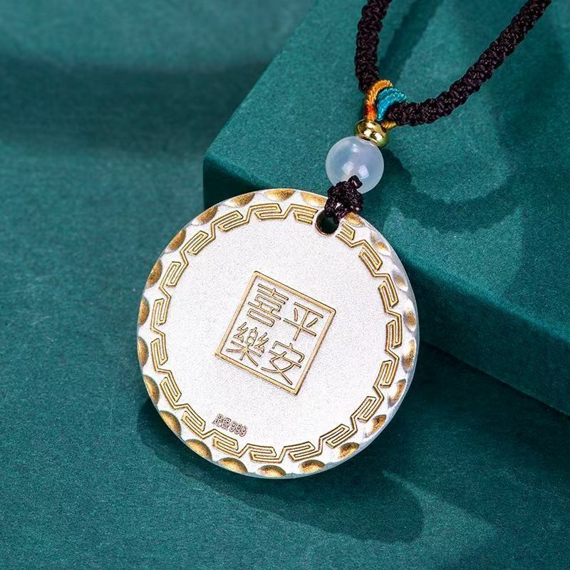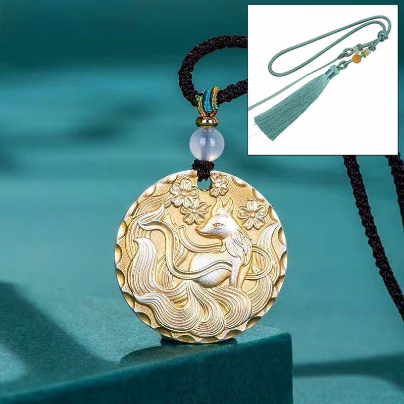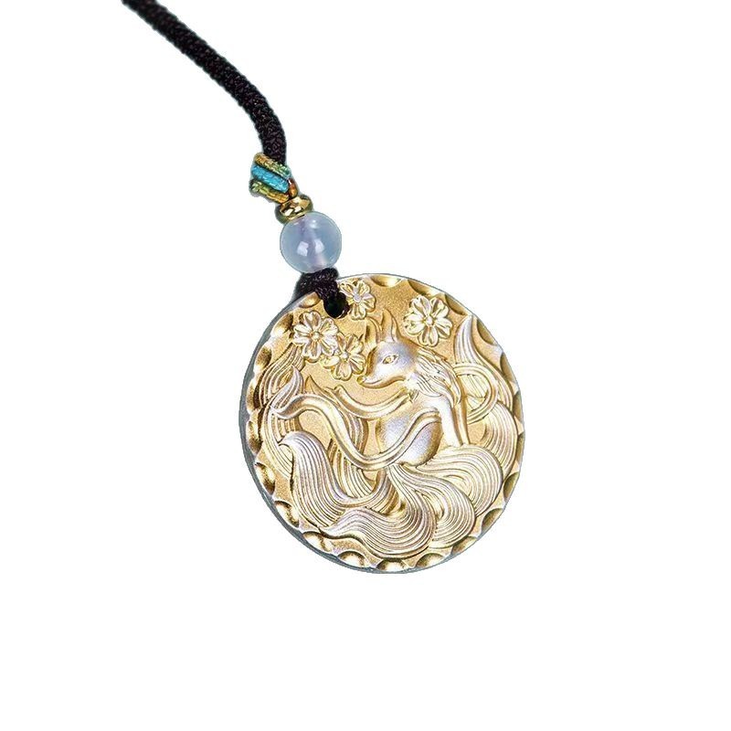 Linghu peach blossom peace brand necklace men and women light luxury new Chinese gift pure fox disc pendant a generation of hair