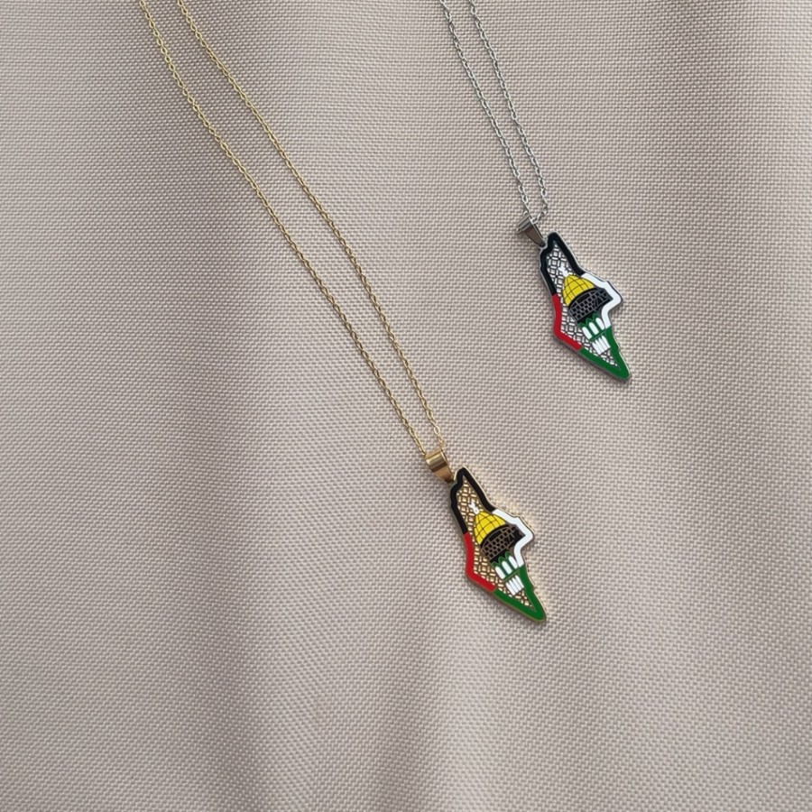 Cross-Border Hot-Selling Stainless Steel Scarf National Flag Map Epoxy Men's Necklace European and American Popular Middle Eastern Jewelry