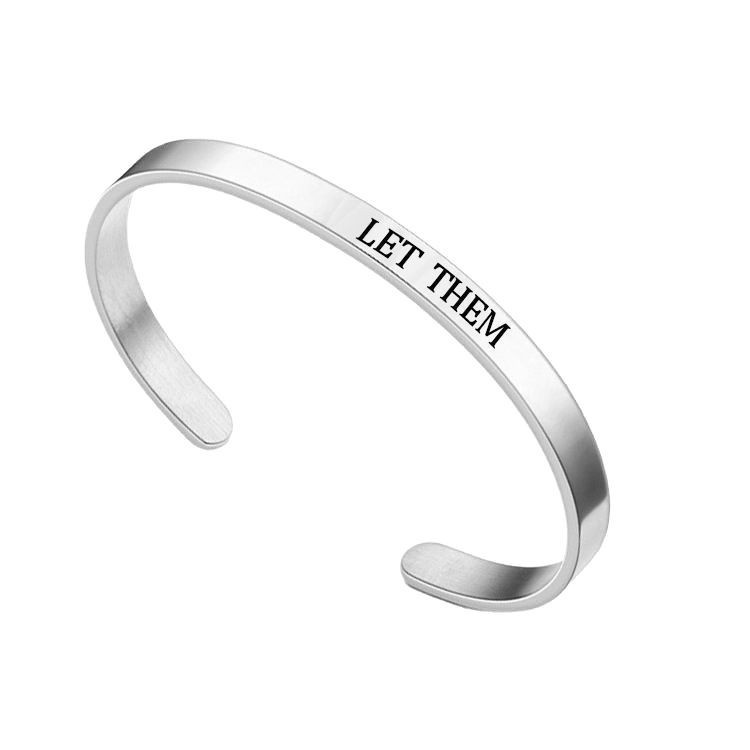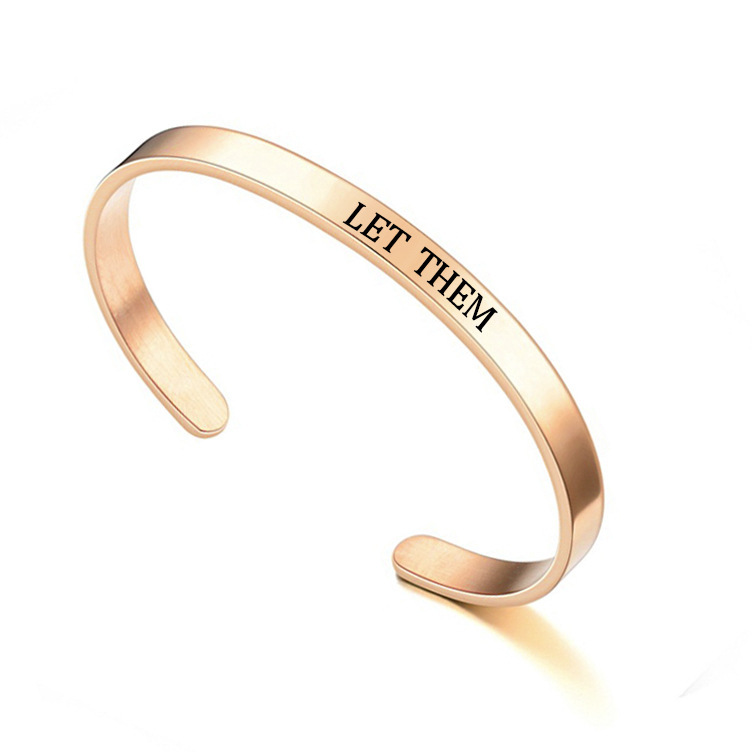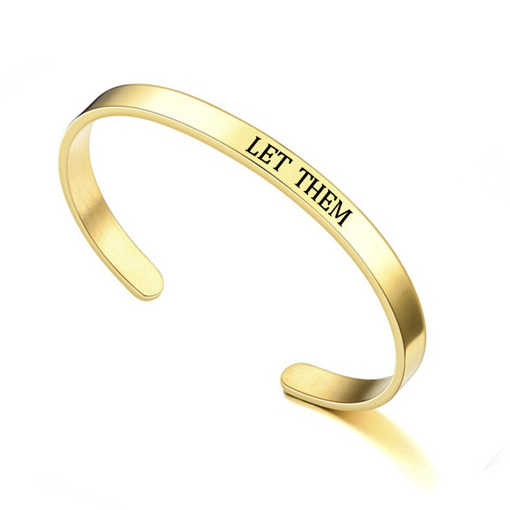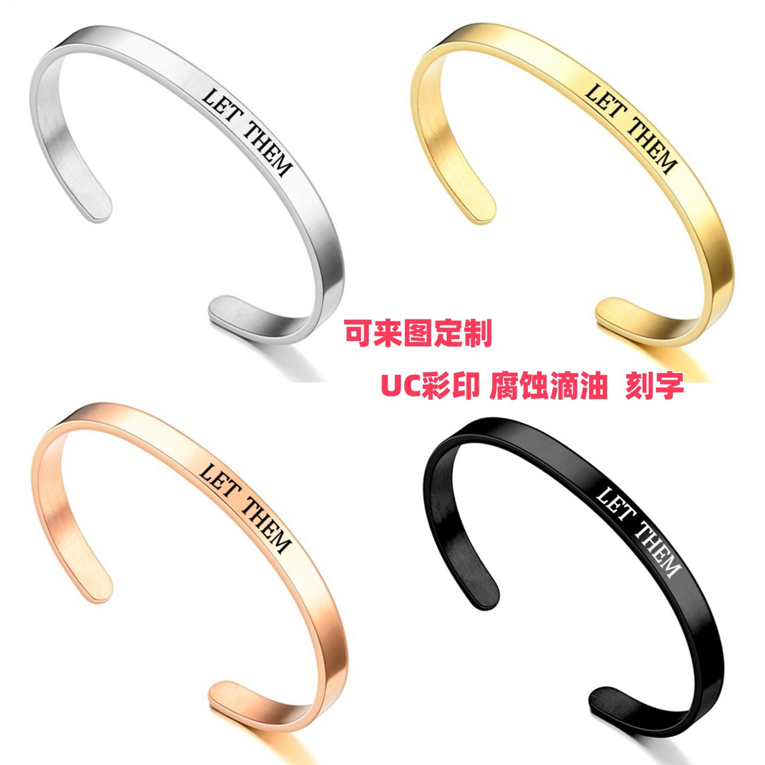 Cross-Border European and American Stainless Steel Jewelry Let Them Letter Bracelet Women's C-Shaped Open Bracelet Engraved Couple Bracelets