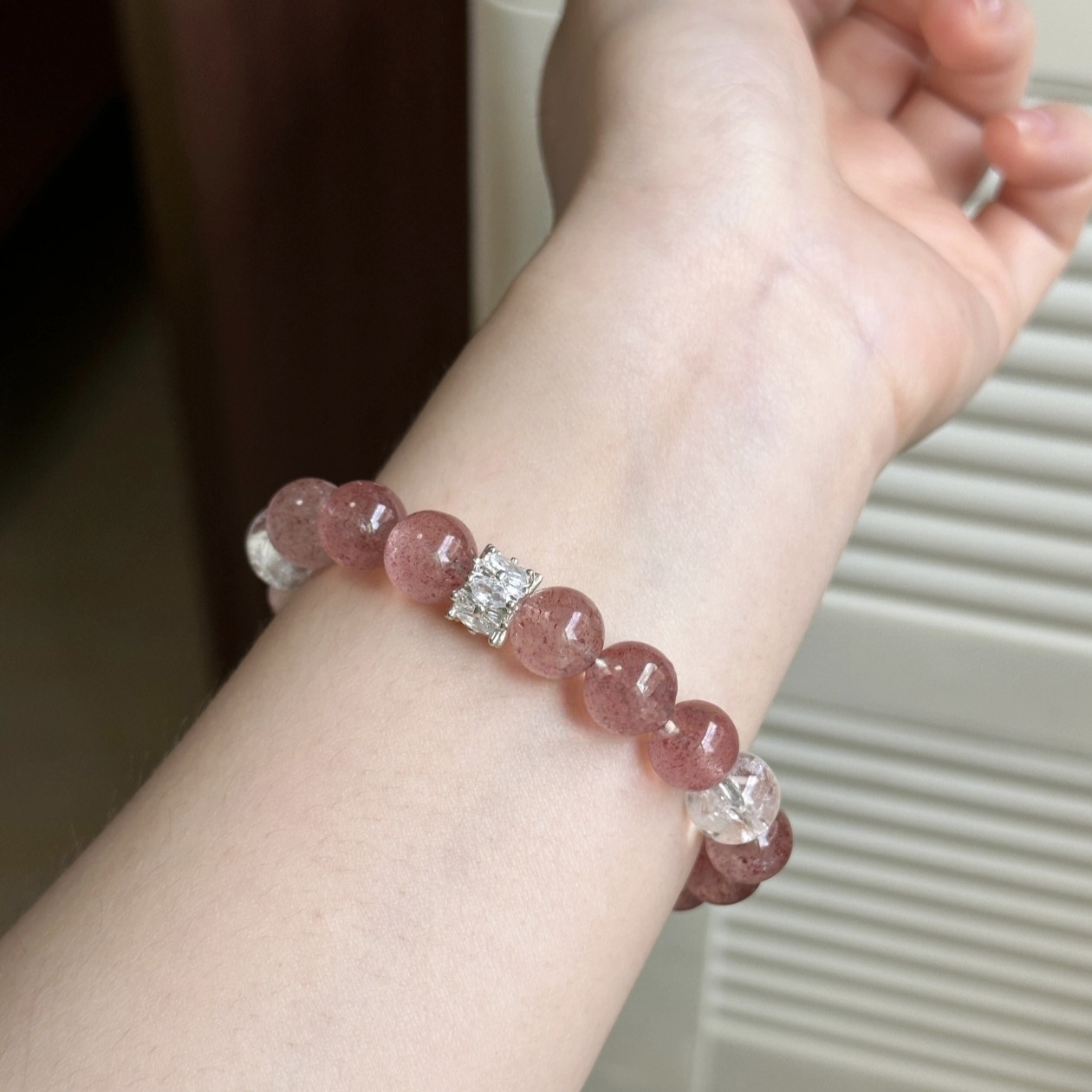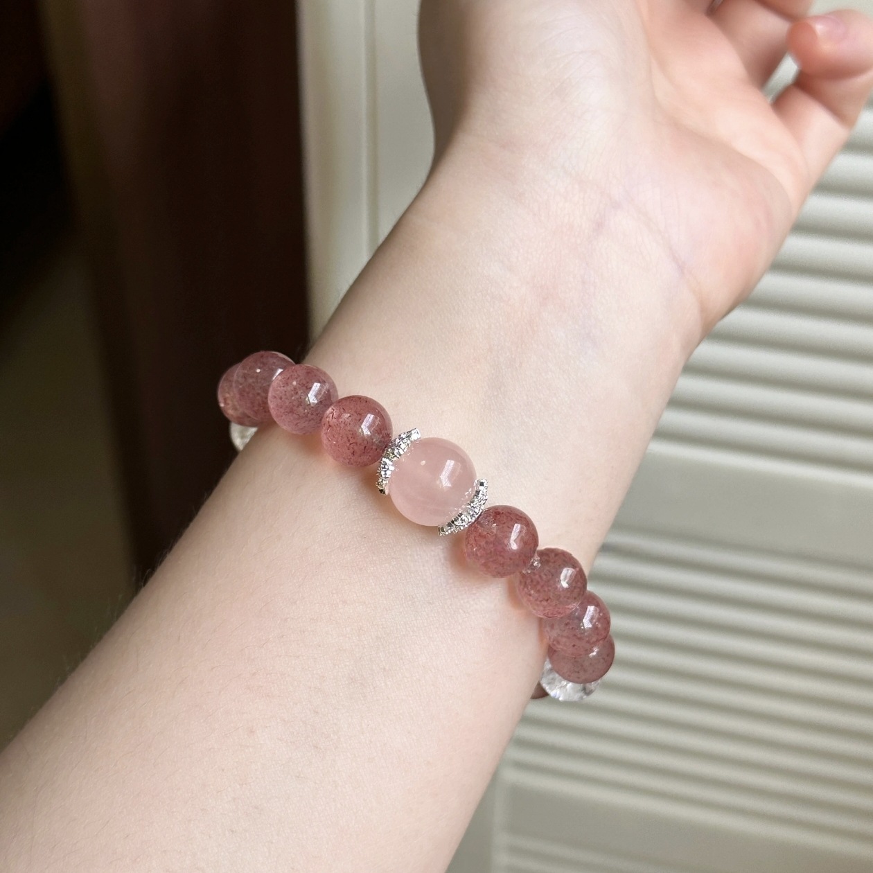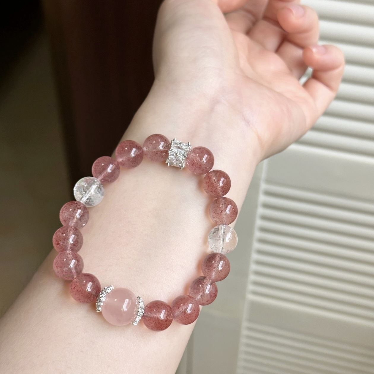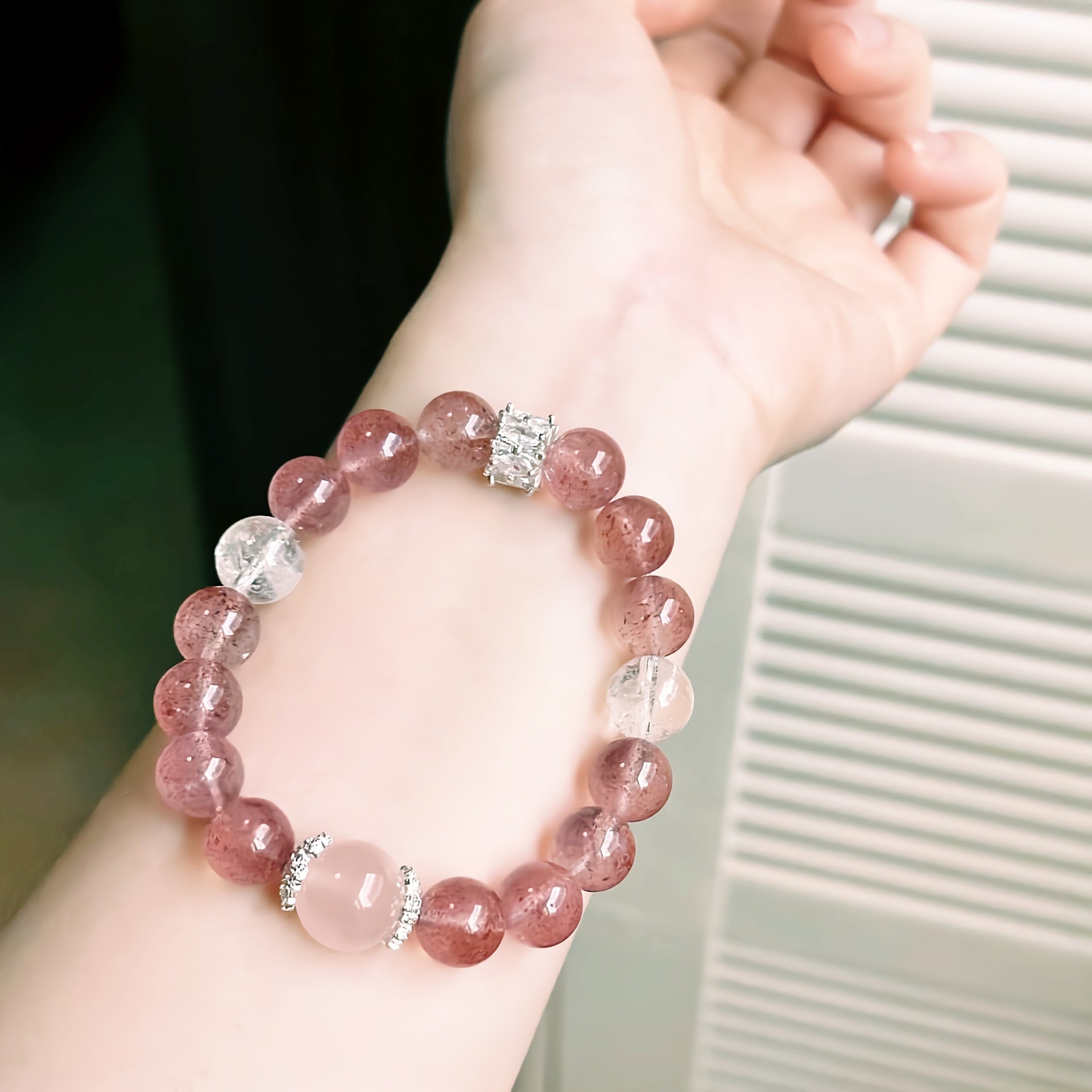 Natural Crystal Purple Horse Pink Crystal Mixed with Strawberry Crystal Starlight Pink Stone Super Strong Love-Attracting Bracelet Wholesale