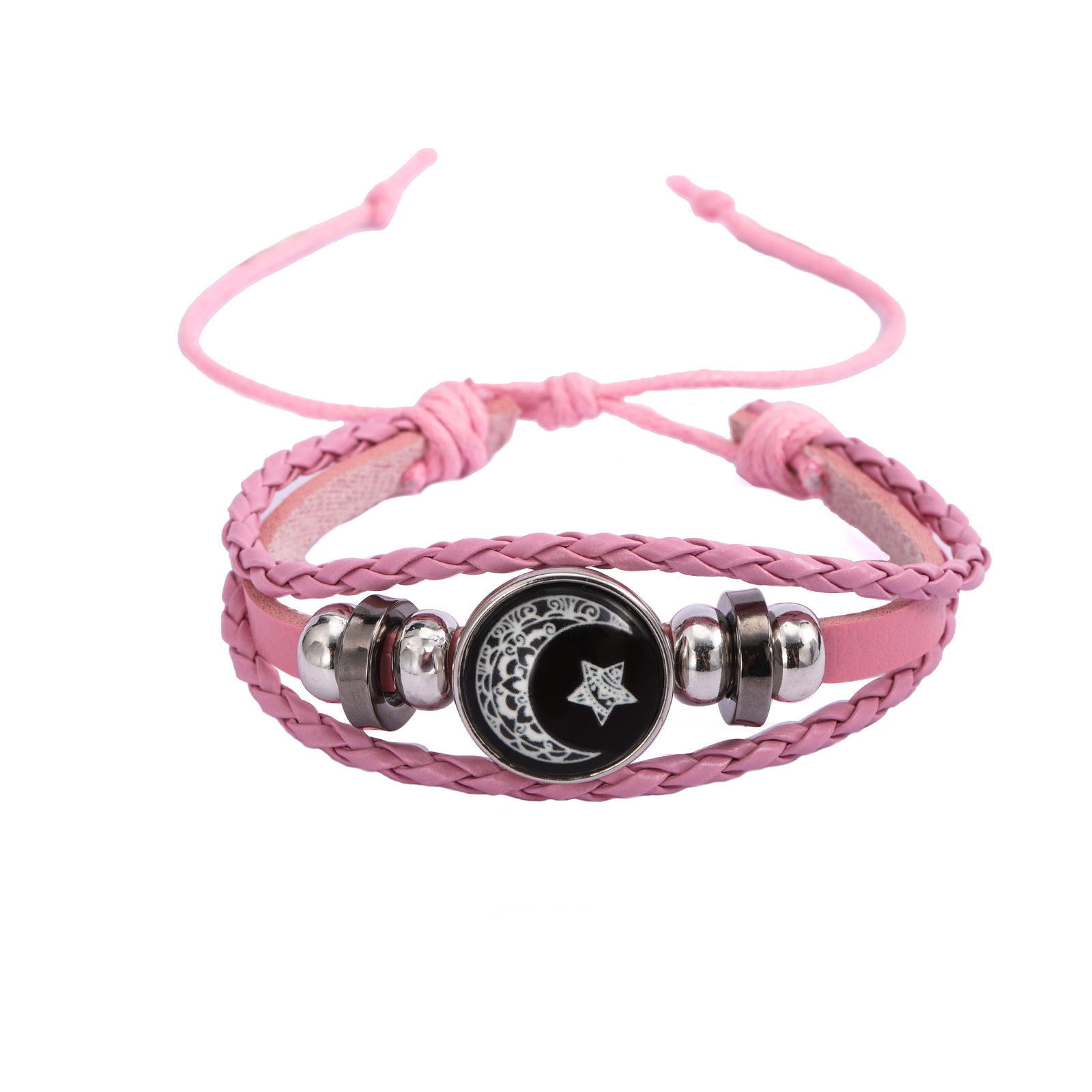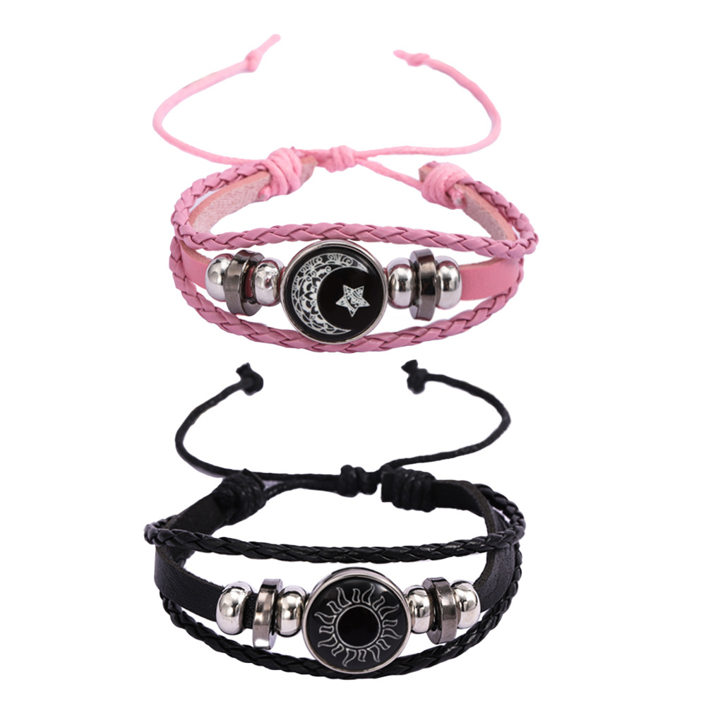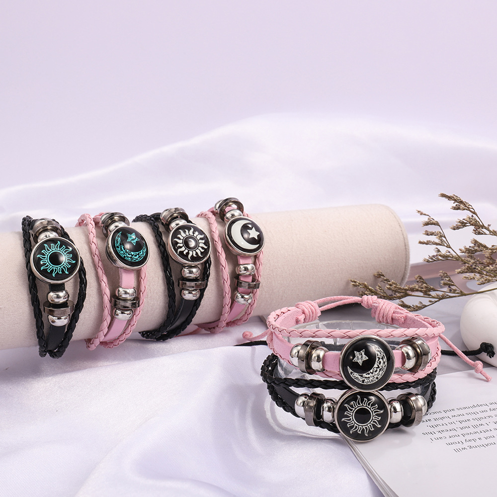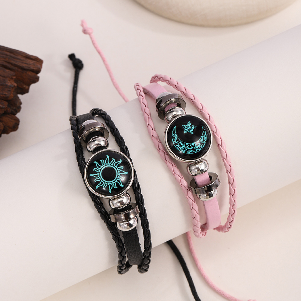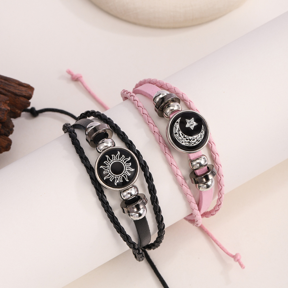 Df Luminous Sun, Moon Lovers Time Gemstone Bracelet Unisex Retro Handmade Multi-Layered Beaded Braided Bracelet