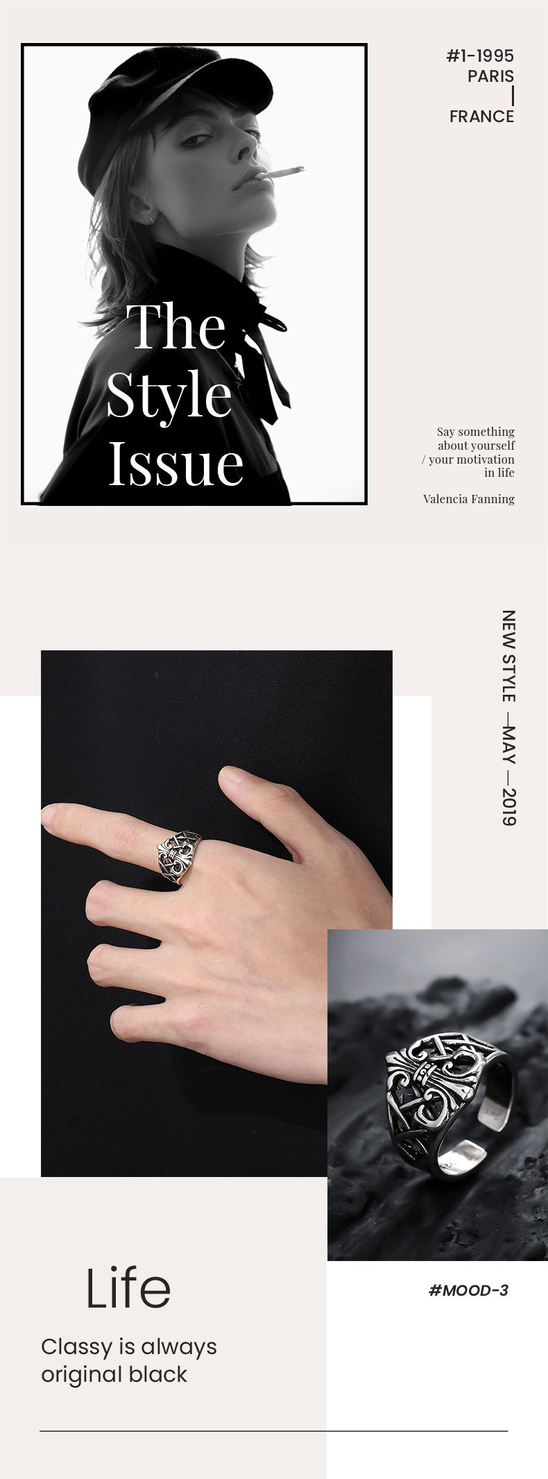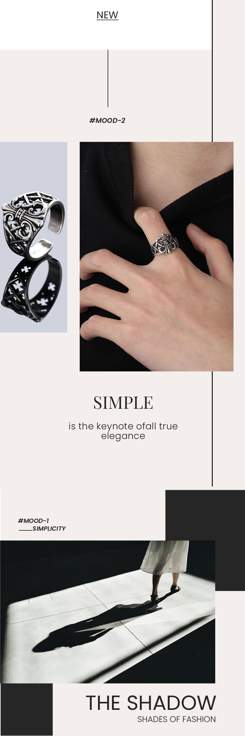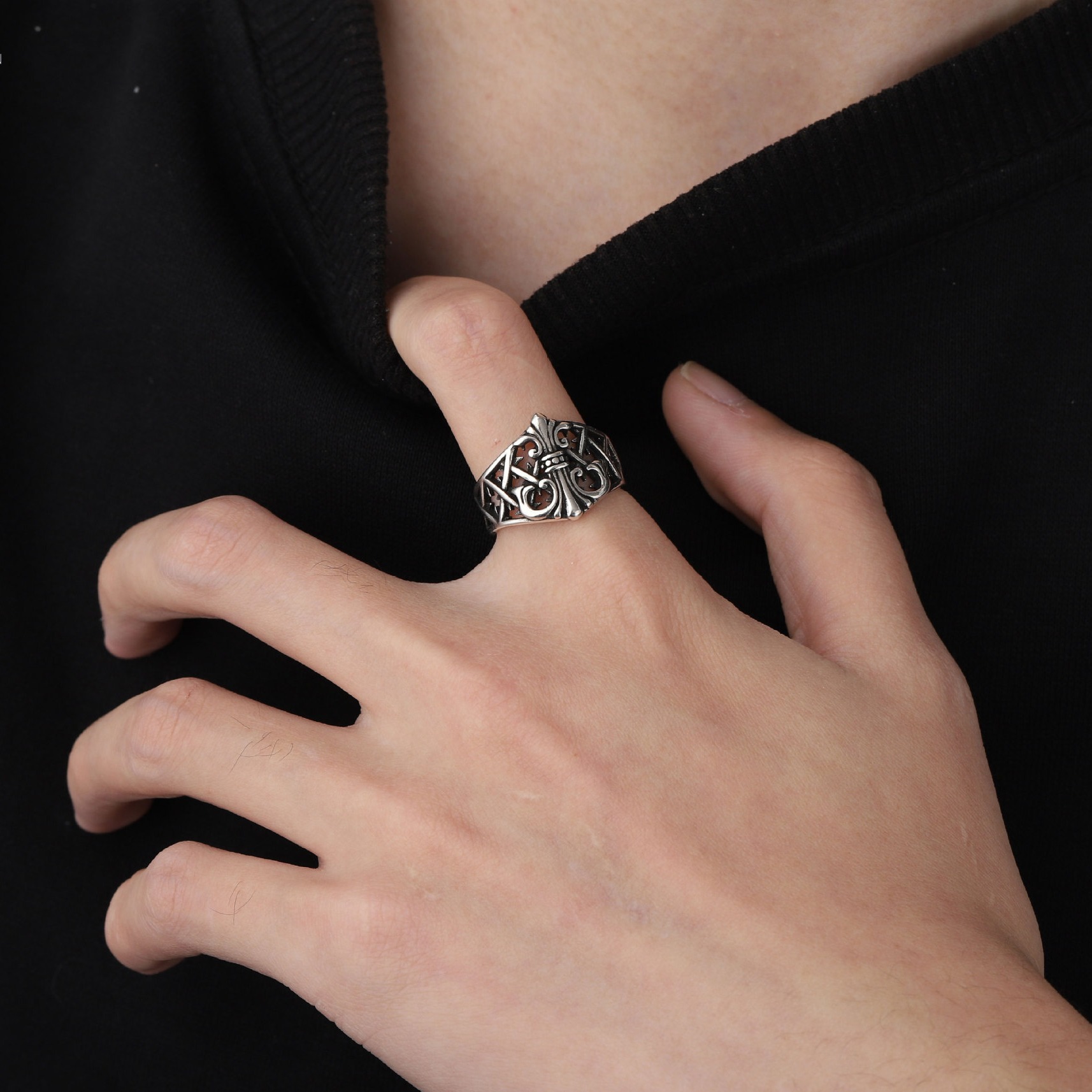 Anchor Ring Men's Old Vintage Trendy Brand Cross Opening Adjustable Ring Women's High-grade All-match Jewelry