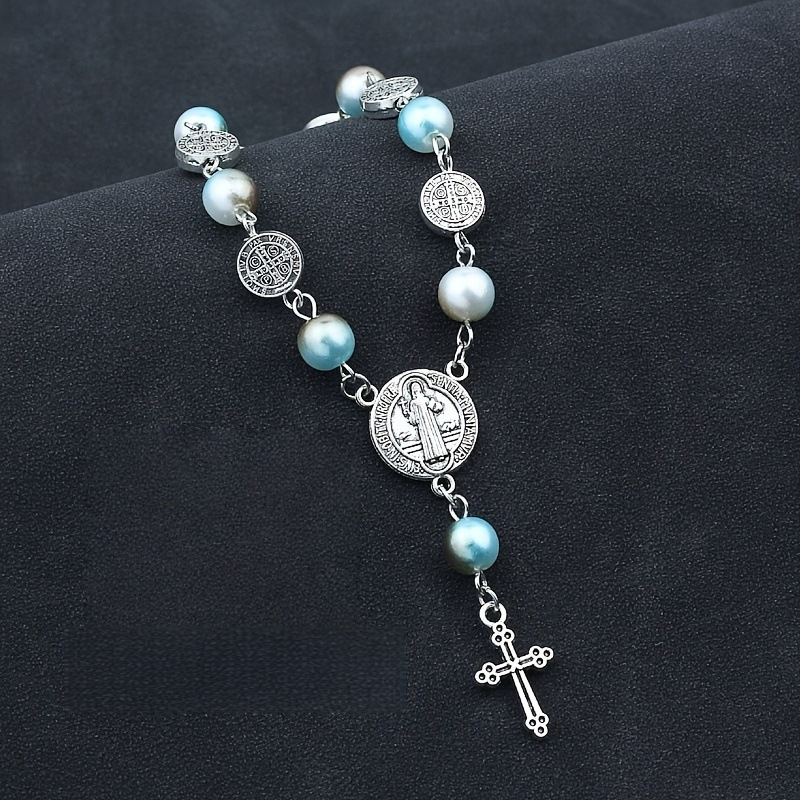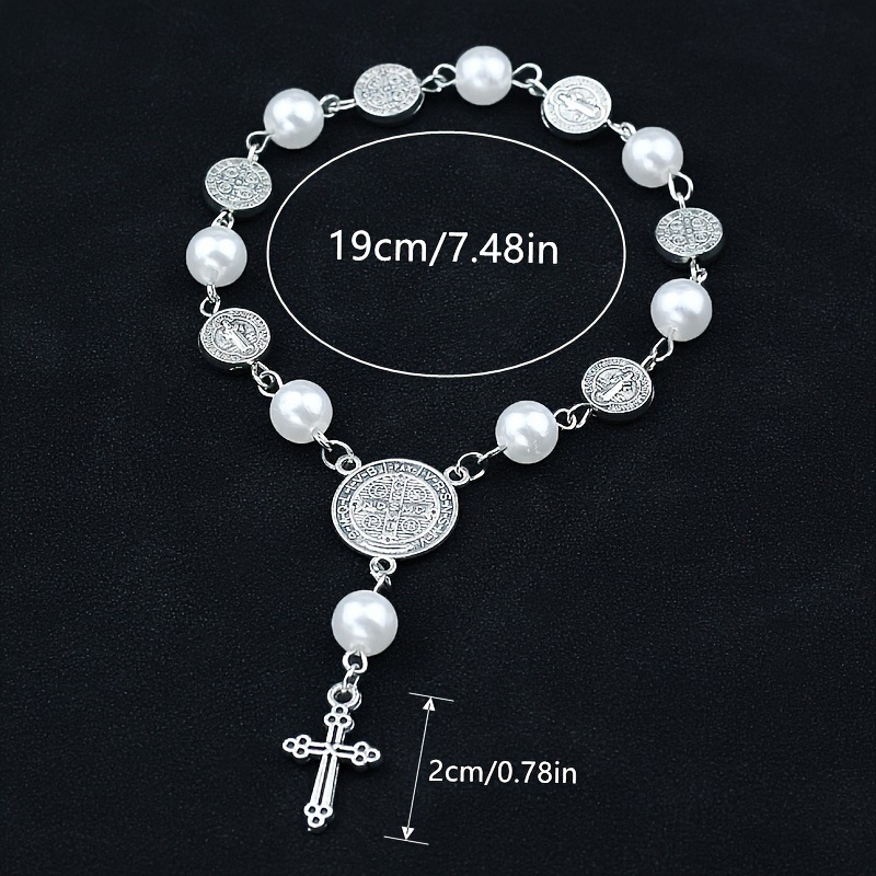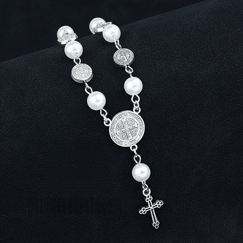 Cross-border Jewelry Cross Rosary Bracelet Women's Light Luxury High-end Imitation Pearl Bracelet Amazon Temu Explosions