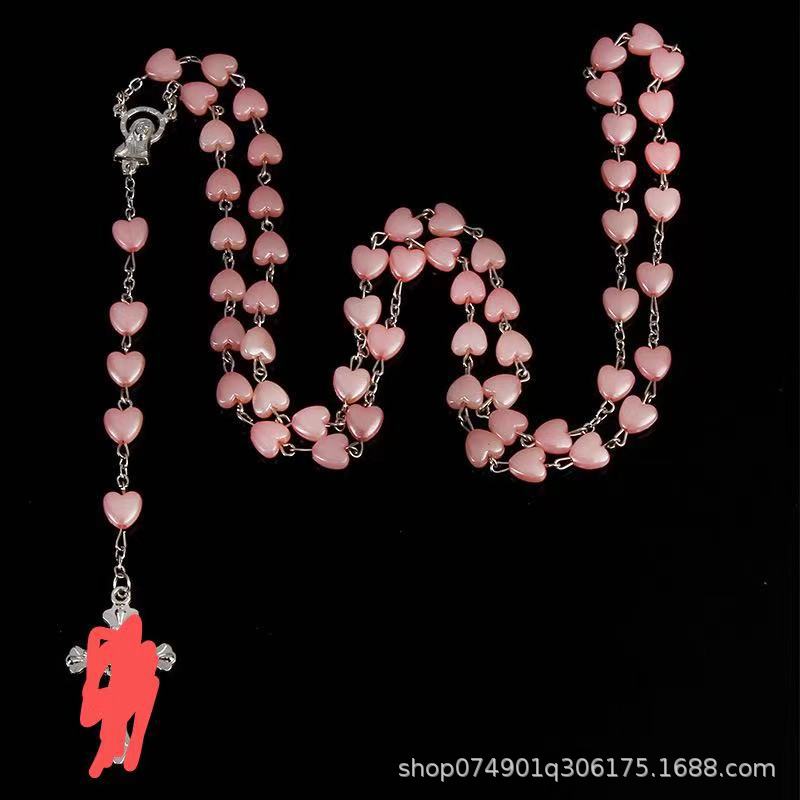 Love pink rosary necklace link handmade center necklace, foreign trade cross-border hot sale