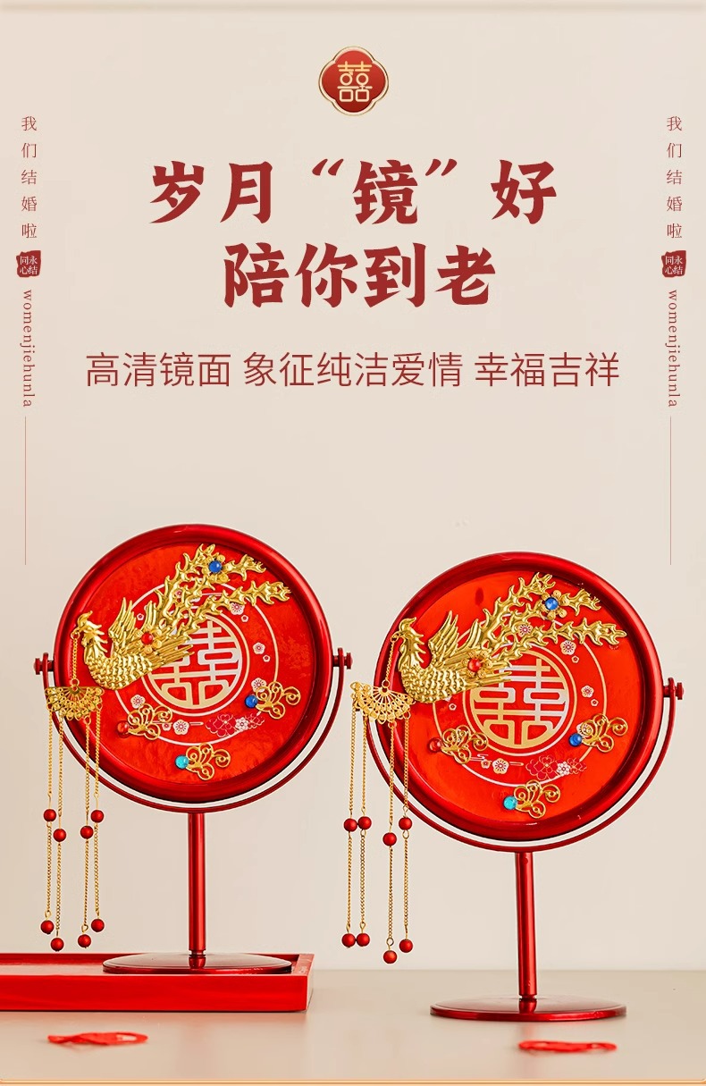 Color: [gift box set of 16 pieces] double happiness wooden handle cup, small round mirror, slippers not included