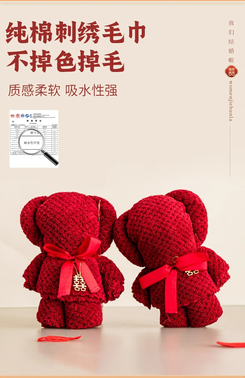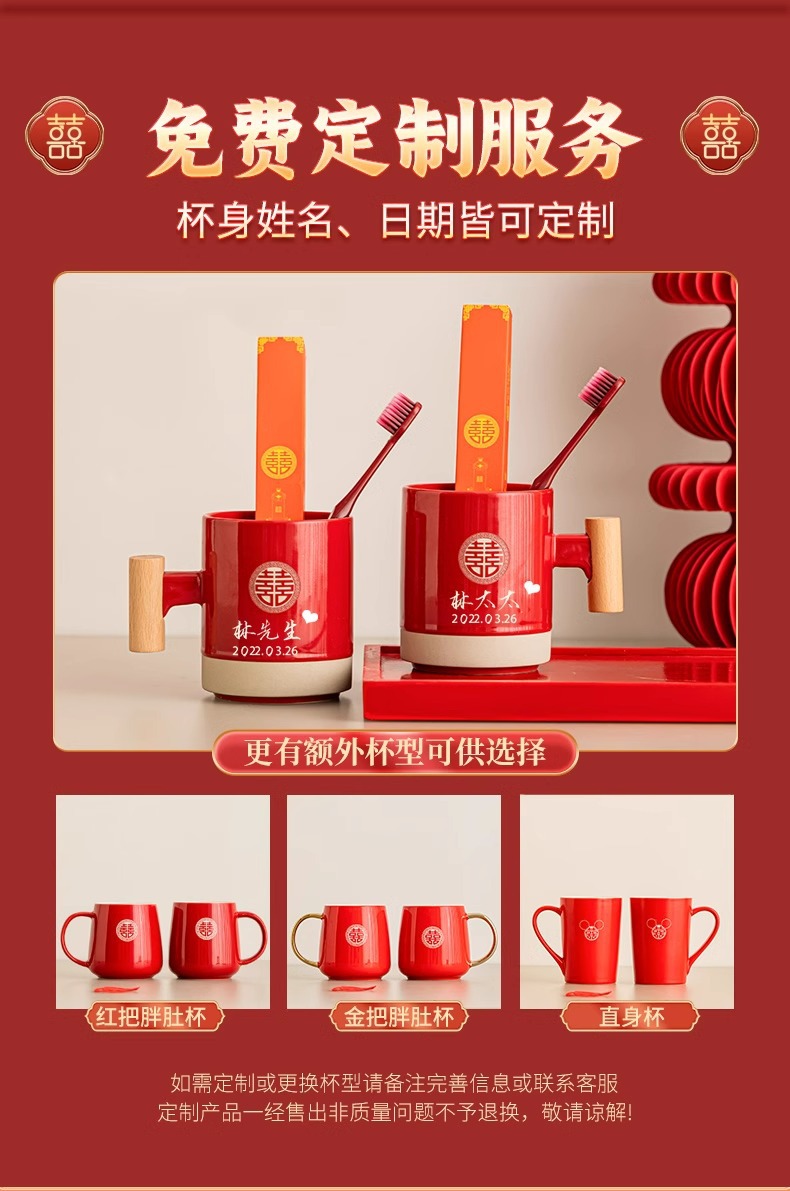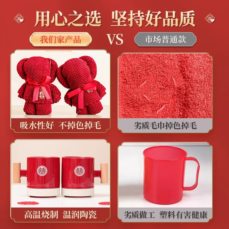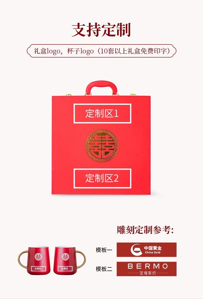Color: [big gift box set of 32 pieces] double happiness wooden handle cup, bear towel, red happiness pot, happiness bowl and eternal lamp, half pack of cotton sandals