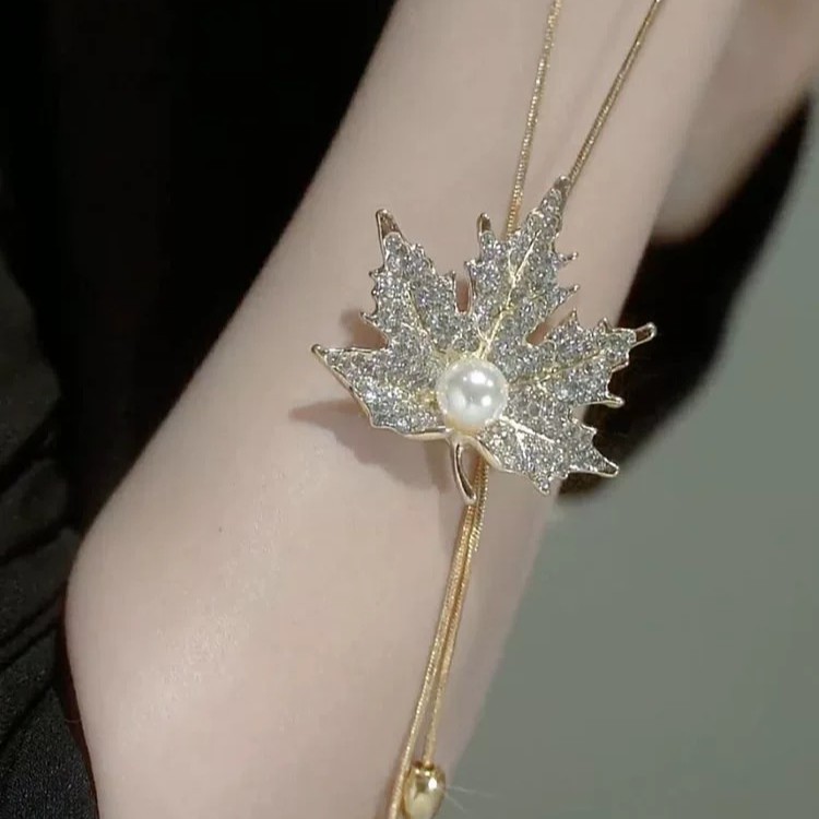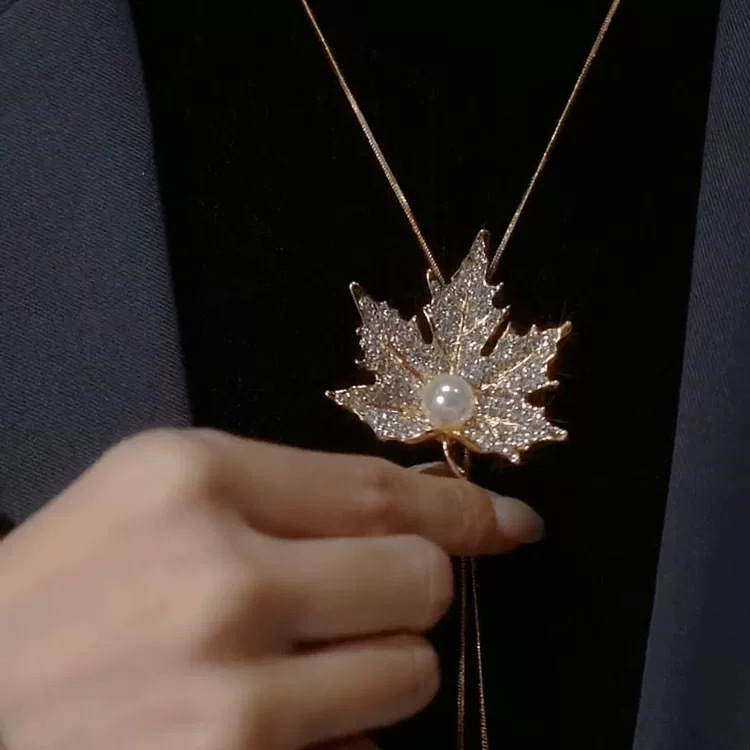 Autumn and Winter Maple Leaf Sweater Chain for Women, Long Fashion Versatile Necklace Accessory, Personalized Clothing Pendant, Sweatshirt Chain for Women
