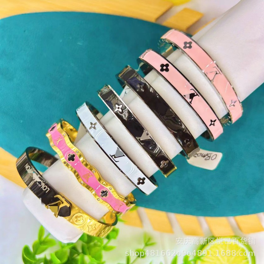2025 New European and American Style Titanium Steel Bracelets, Non-Fading Stainless Steel Bracelets with Clasp, Open-End Jewelry Wholesale