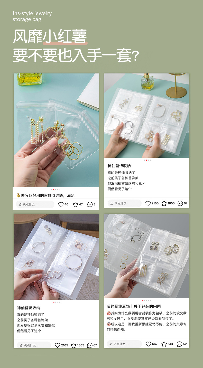 [Newcomer Enjoy 0.01 Yuan] Jewelry Storage Box Earrings Anti-Oxidation Dustproof Storage Bag Jewelry Booklet Sealed Bag
