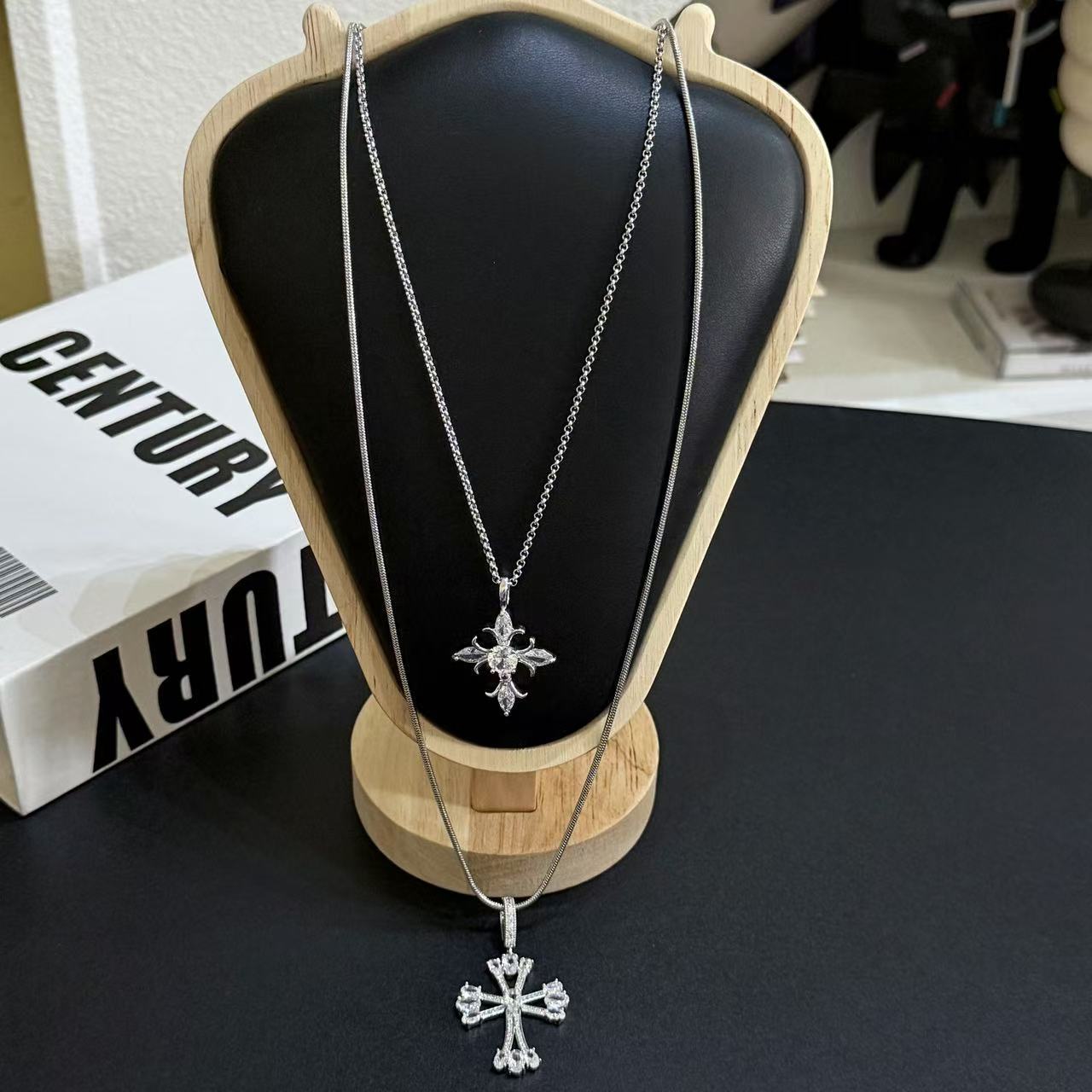 Gothic Style Micro-set Zircon Cross Necklace Female Y2K Subculture Girl Sweet Cool Spice Neck Chain Sweater Chain Trendy
