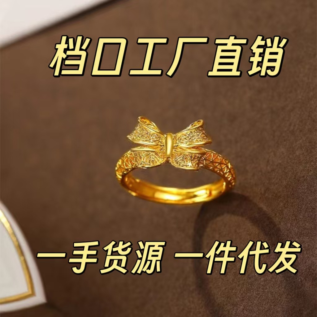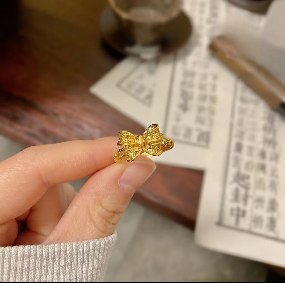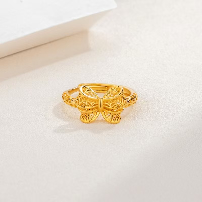 New Fairy-Like Sweet Temperament Goddess Hollow Bow Ring Gold-Plated Fairy Jewelry E-Commerce Supply Wholesale