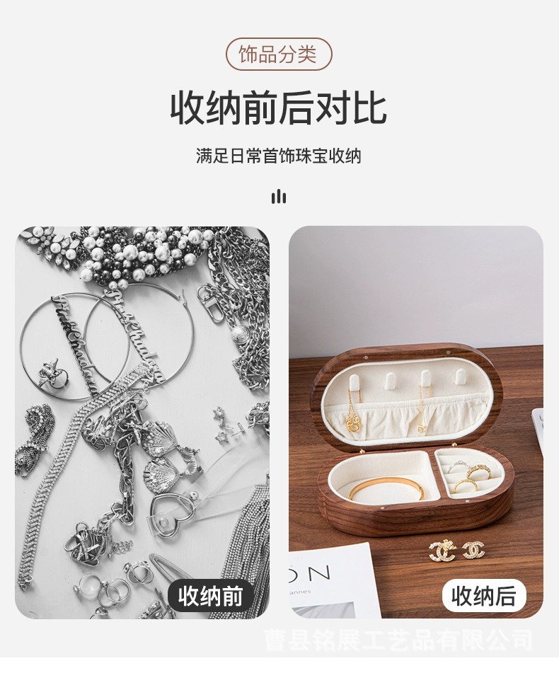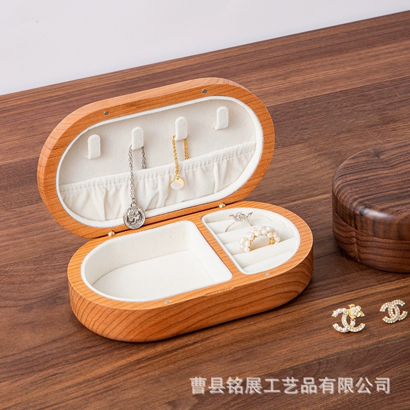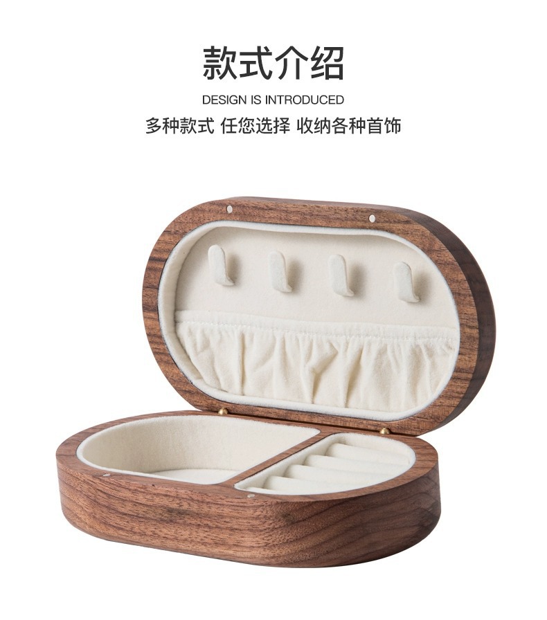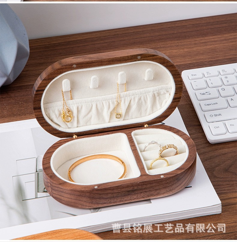 Black Walnut Jewelry Storage Box Bracelet Necklace Storage Box Oval Jewelry Display Box Ear Nail Box