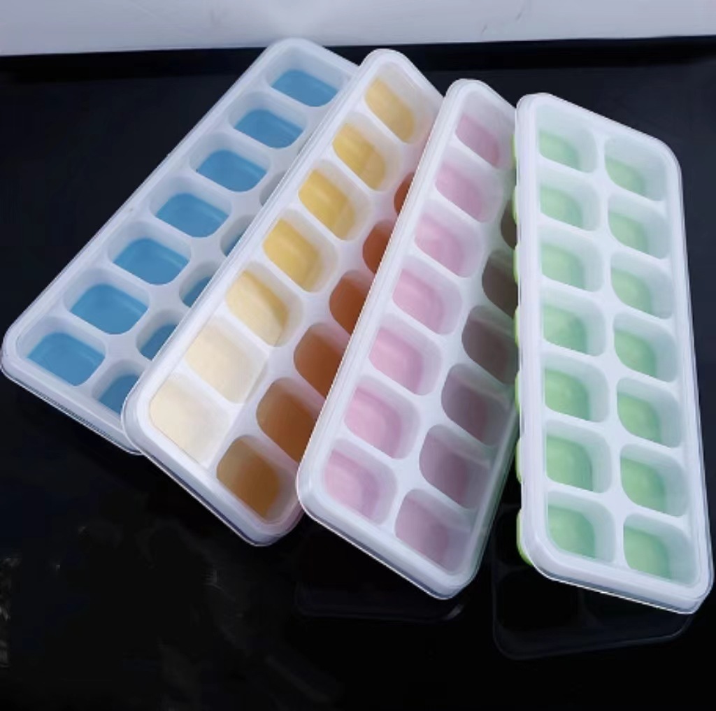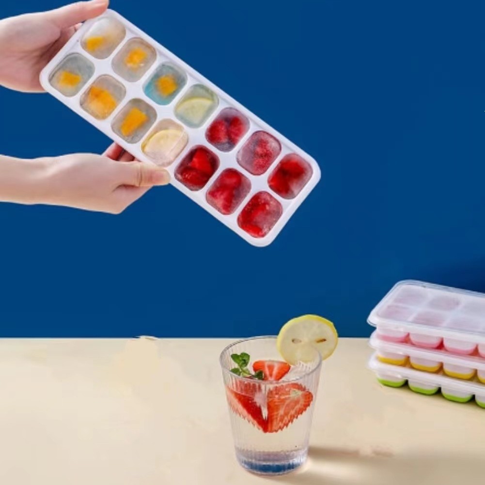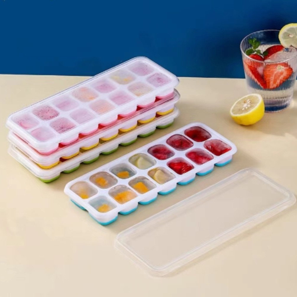 14-Grids Ice Cube Square Ice Tray Mold with Lid, Soft Bottom, Easy to Release Ice Box, Homemade Ice Cube Box