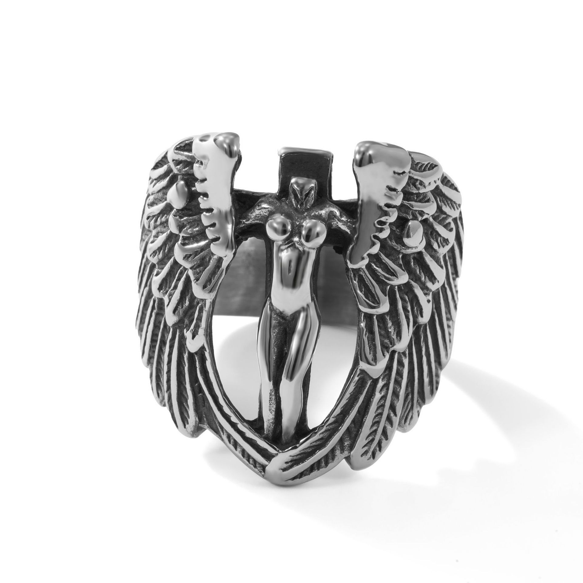 Stainless Steel Wing Ring Goddess Wings Titanium Steel Non-Fading European and American Creative Stylish Factory Direct Sales Popular Angel