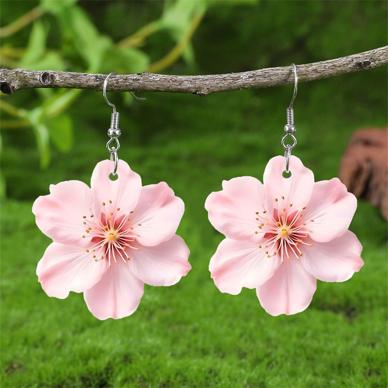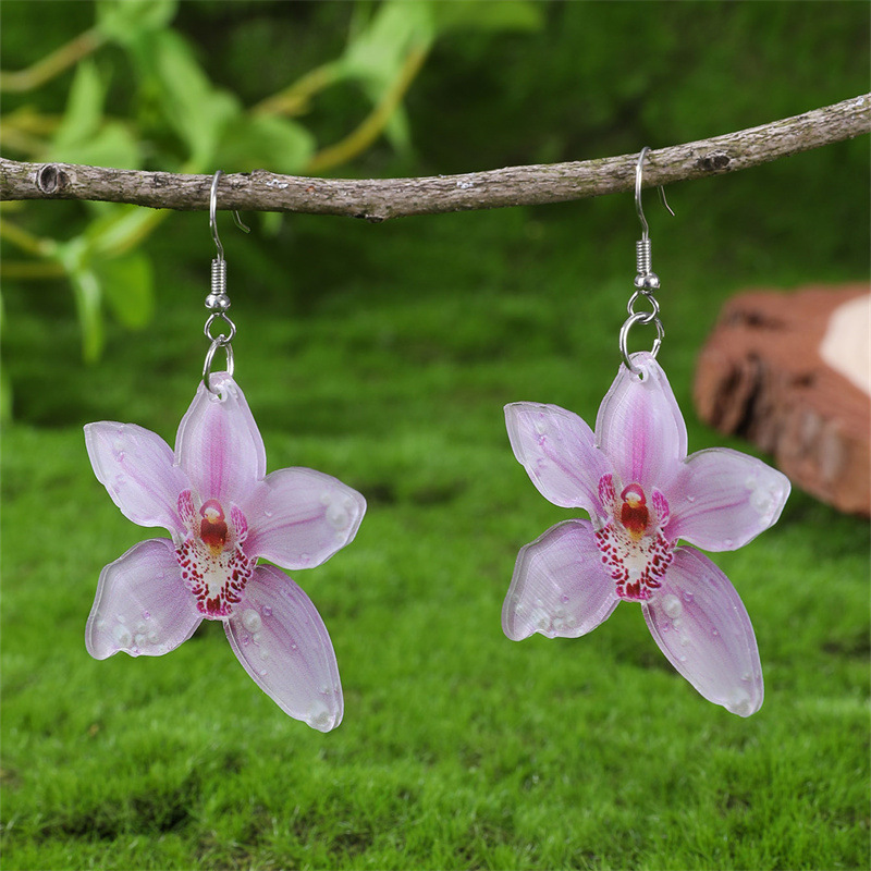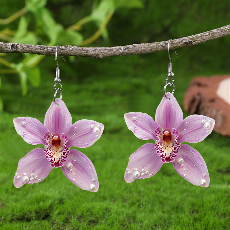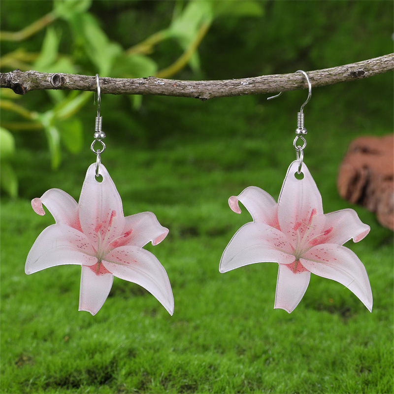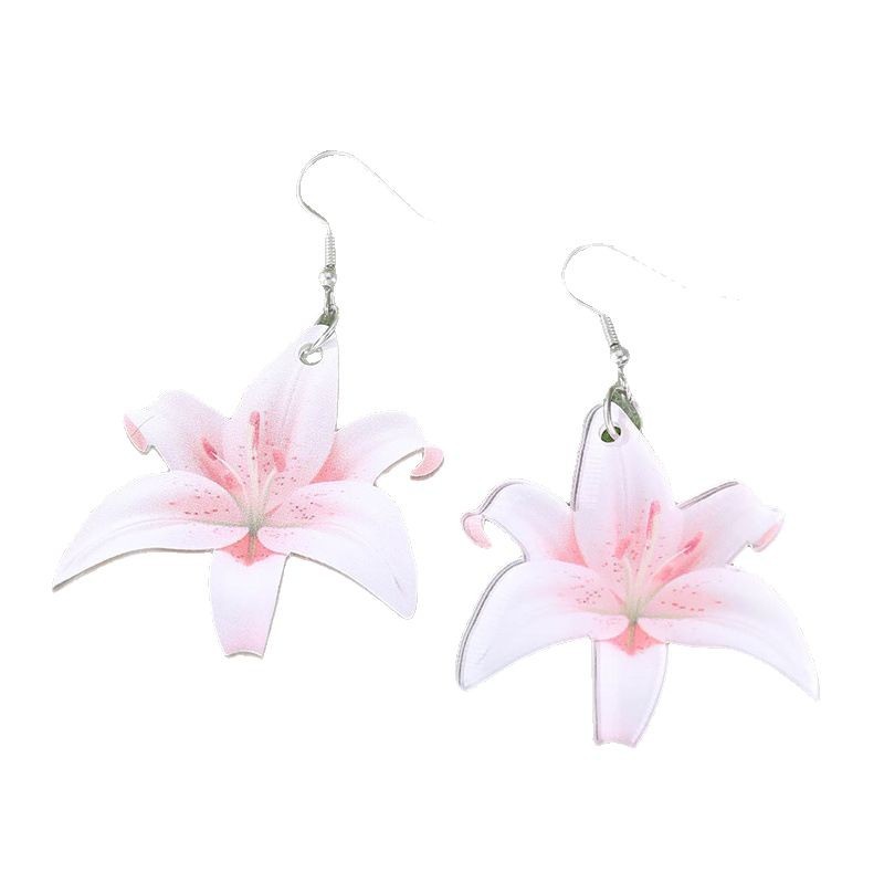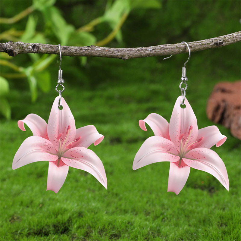 Ez5598 Cross-Border Spring Hot-Selling New Lily Flower 2D Printed Plate Pearl Colorful Women's Earrings Jewelry