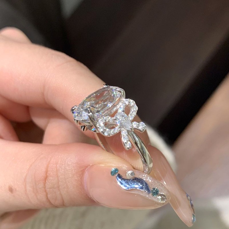Xiaohongshu's Popular Bow Pigeon Egg Ring for Women 2025 New Style Inlaid with Sparkling Diamonds Fugitive Princess Accessible Luxury Ring