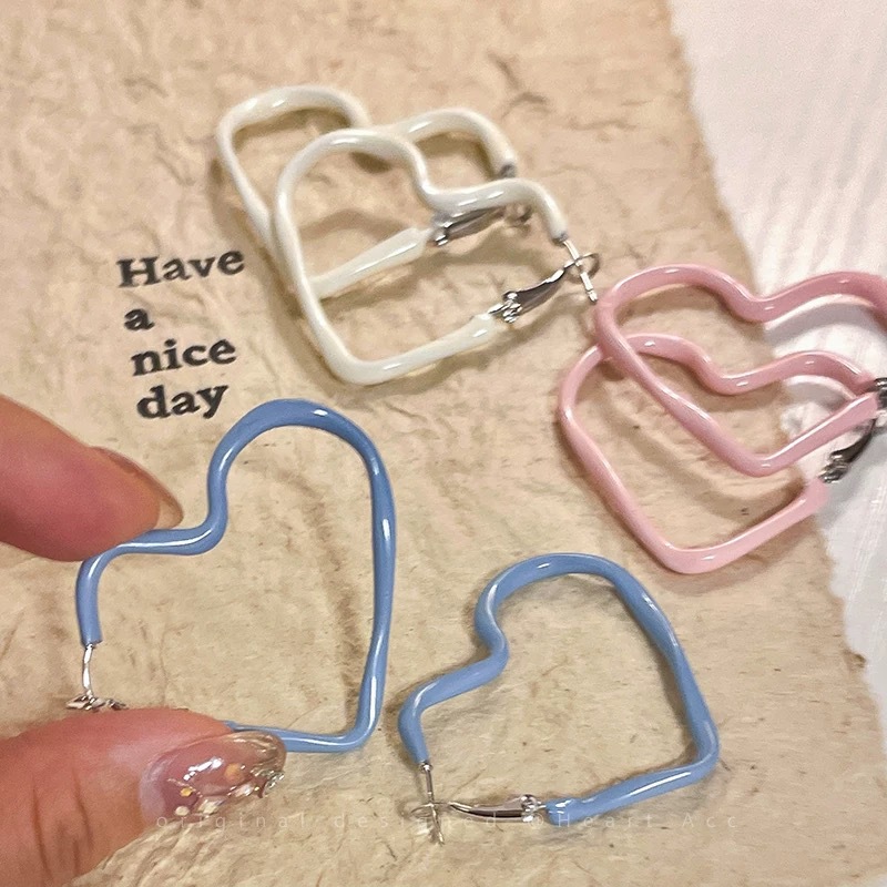 Solid Color Dropping Glaze Love Ear Ring Women's Korean Style Sweet Small Fresh Plain Ring Earrings 2025 New Simple All-match Earrings
