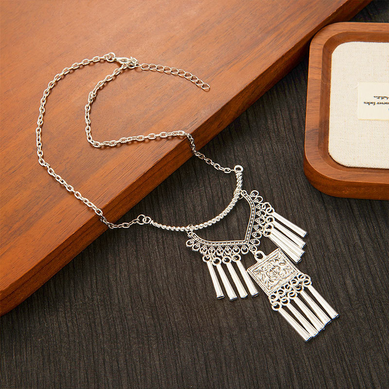 Ethnic Style Imitation Miao Silver Xizang Silver Tassel Necklace Retro Middle East Indian Style Bohemian Necklace Fashion High Sense