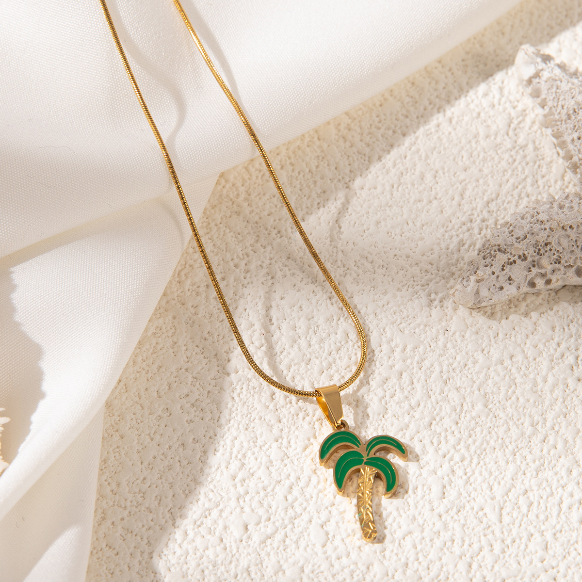 New Stainless Steel 18K Gold Waterproof Beach Necklace Women's Titanium Steel Shell Pendant European and American Cross-border Color Pendant
