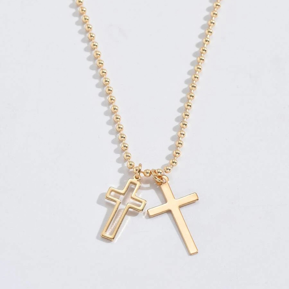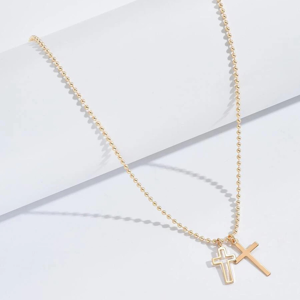 Cross-border Hot-selling Stainless Steel Double Cross Fashion Simple Pendant Necklace Women's European and American Style Internet Popular Trendy Clavicle Chain