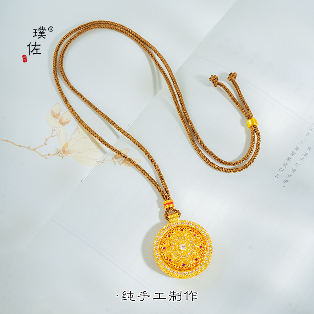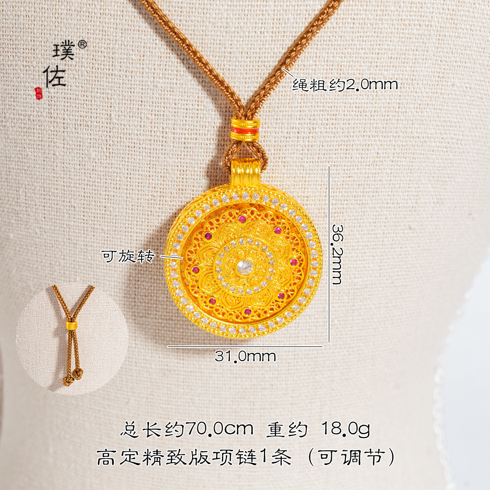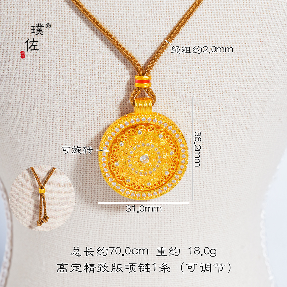 Color: Rose red diamond-encrusted eight-rui lotus compass coffee wishful rope necklace 1 piece