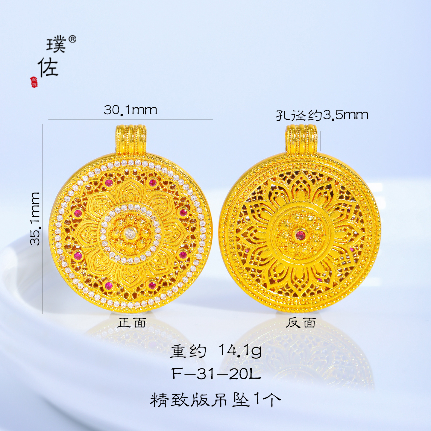 Color: F-31-20 double-sided rose red diamond-encrusted eight-rui lotus compass pendant 1 piece