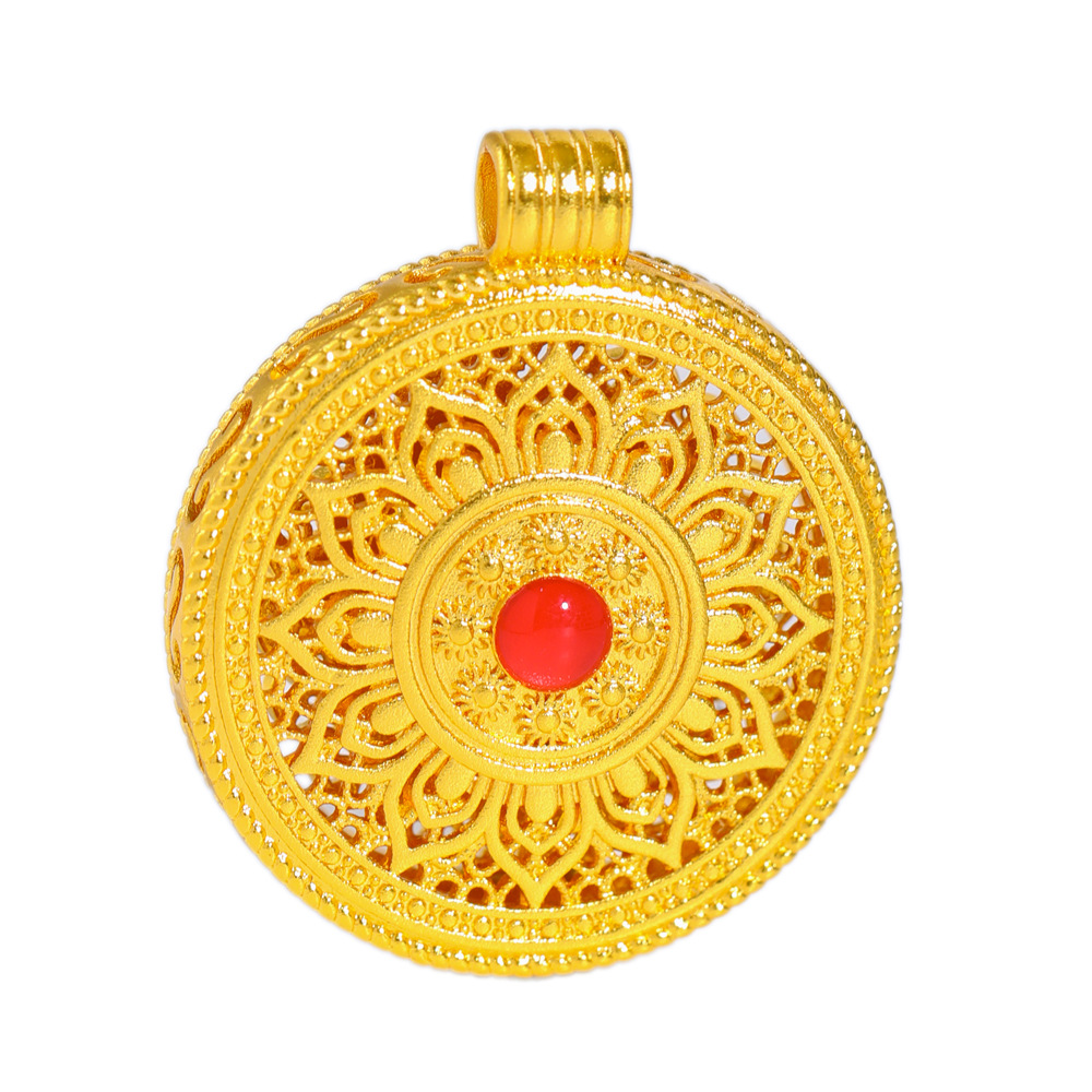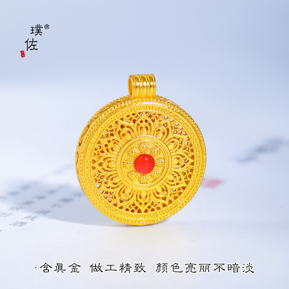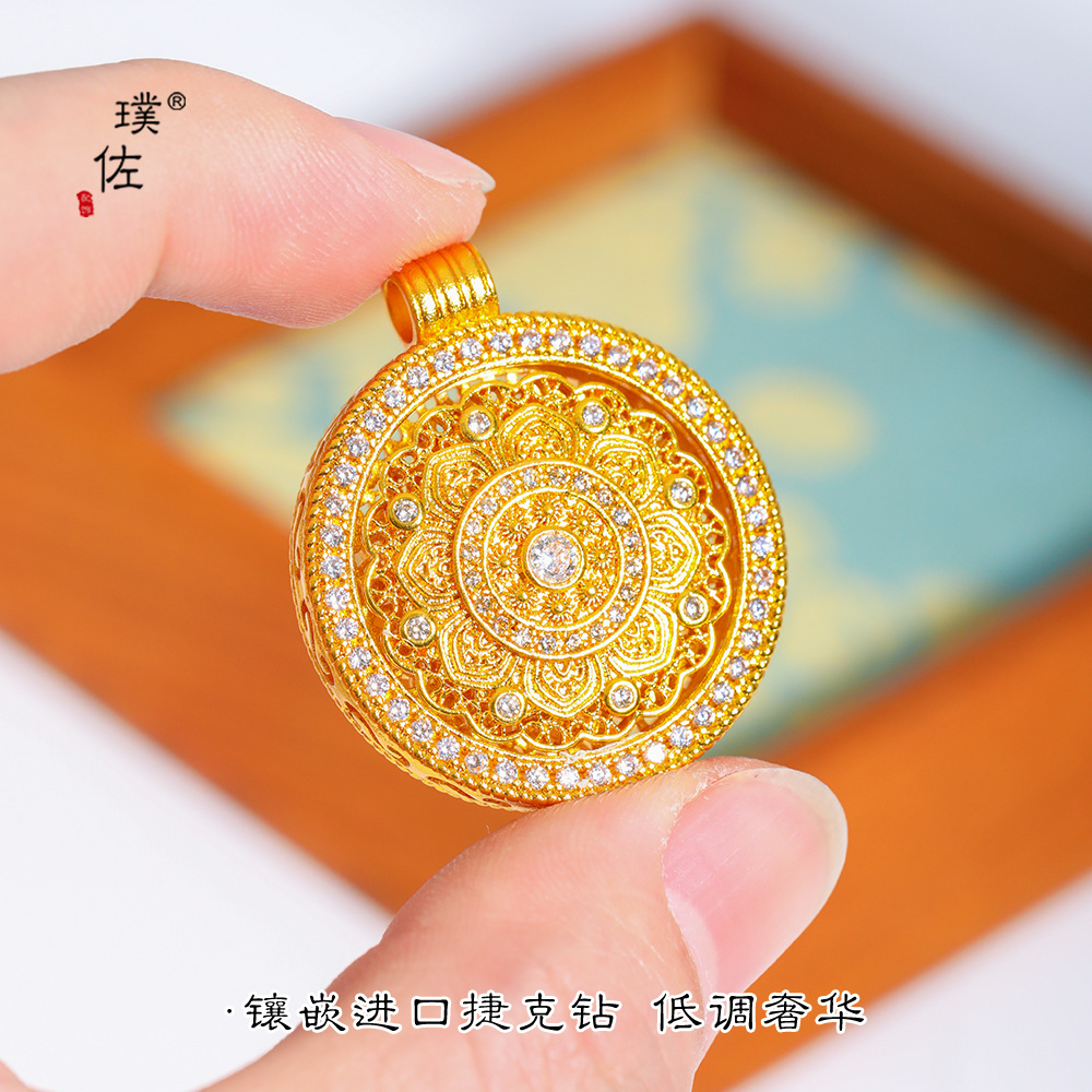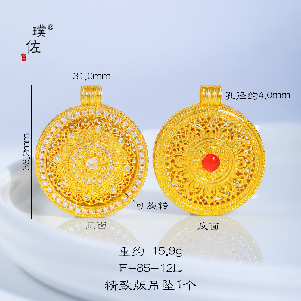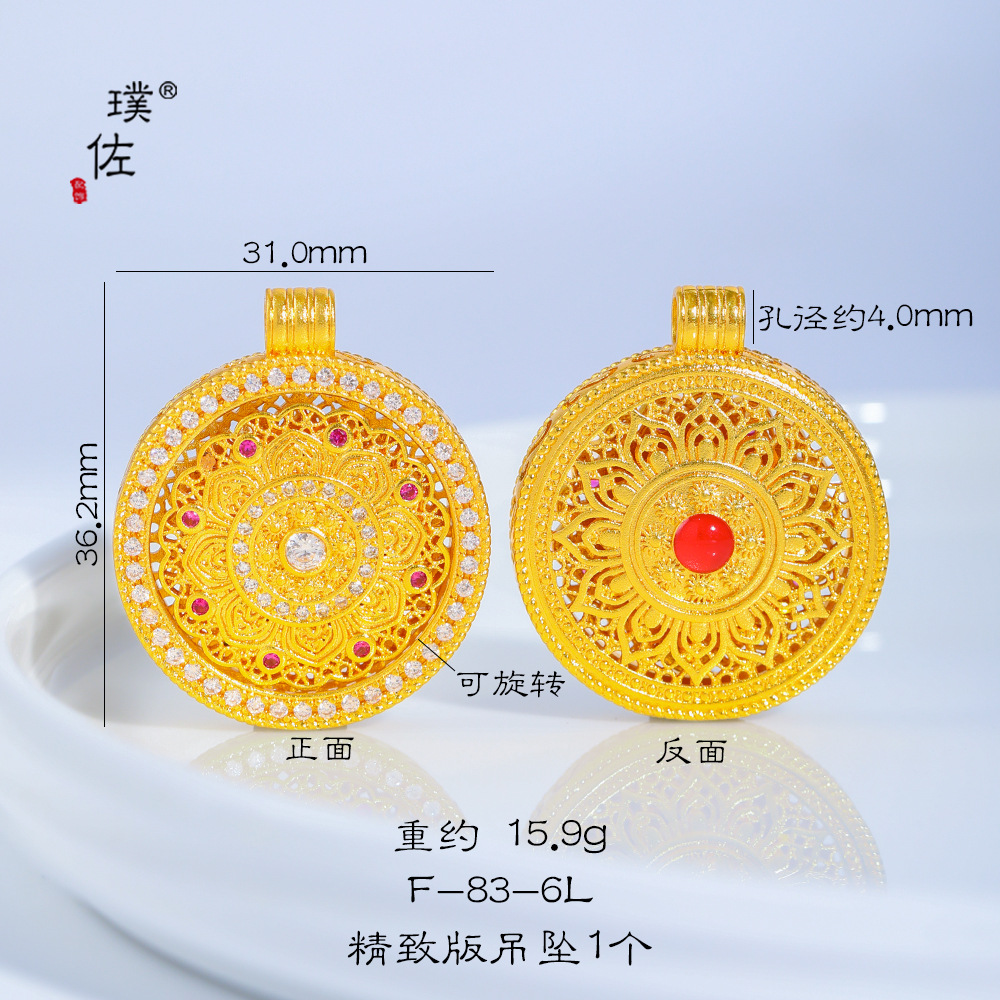 Color: F-83-6 rose red diamond-encrusted eight-rui lotus compass pendant 1 piece
