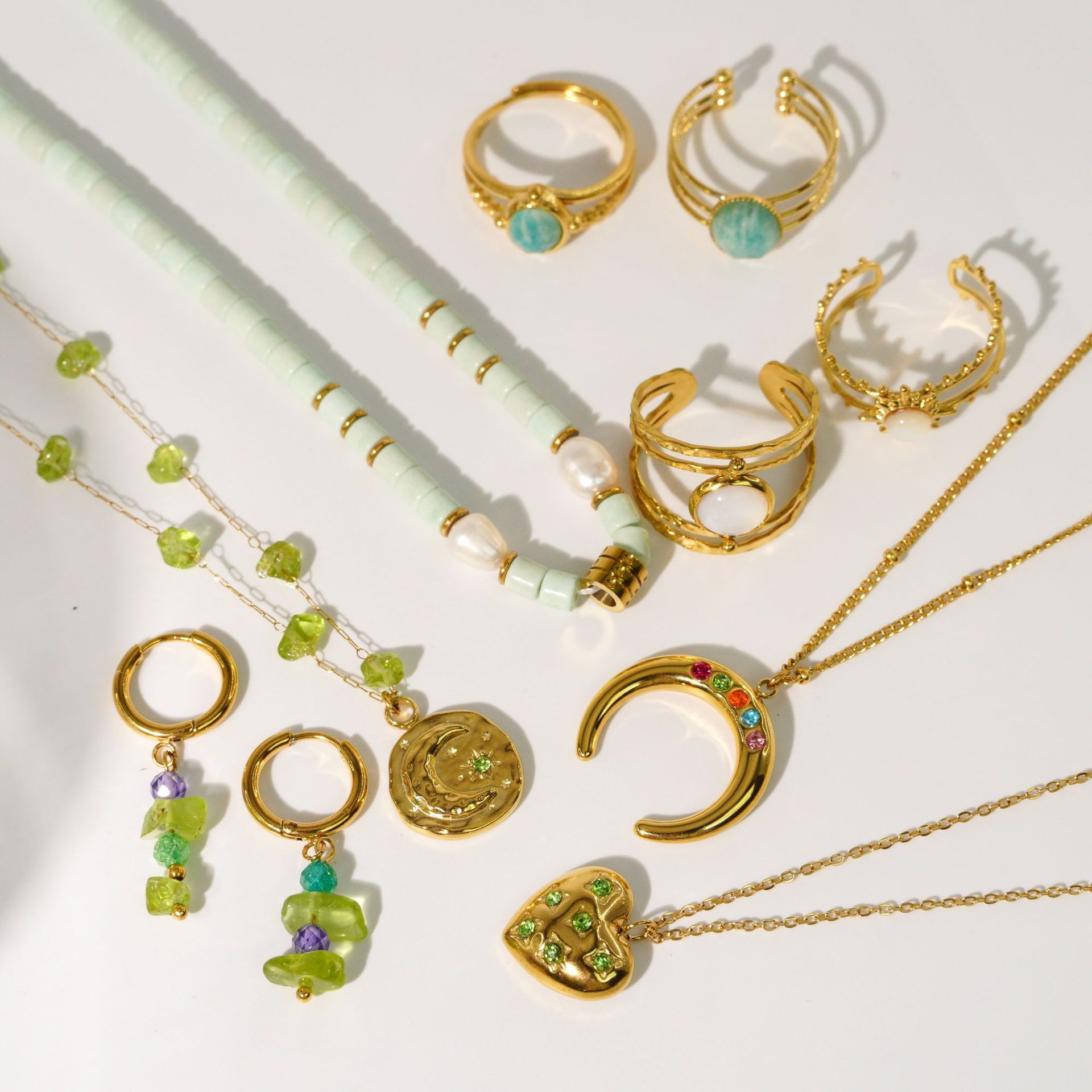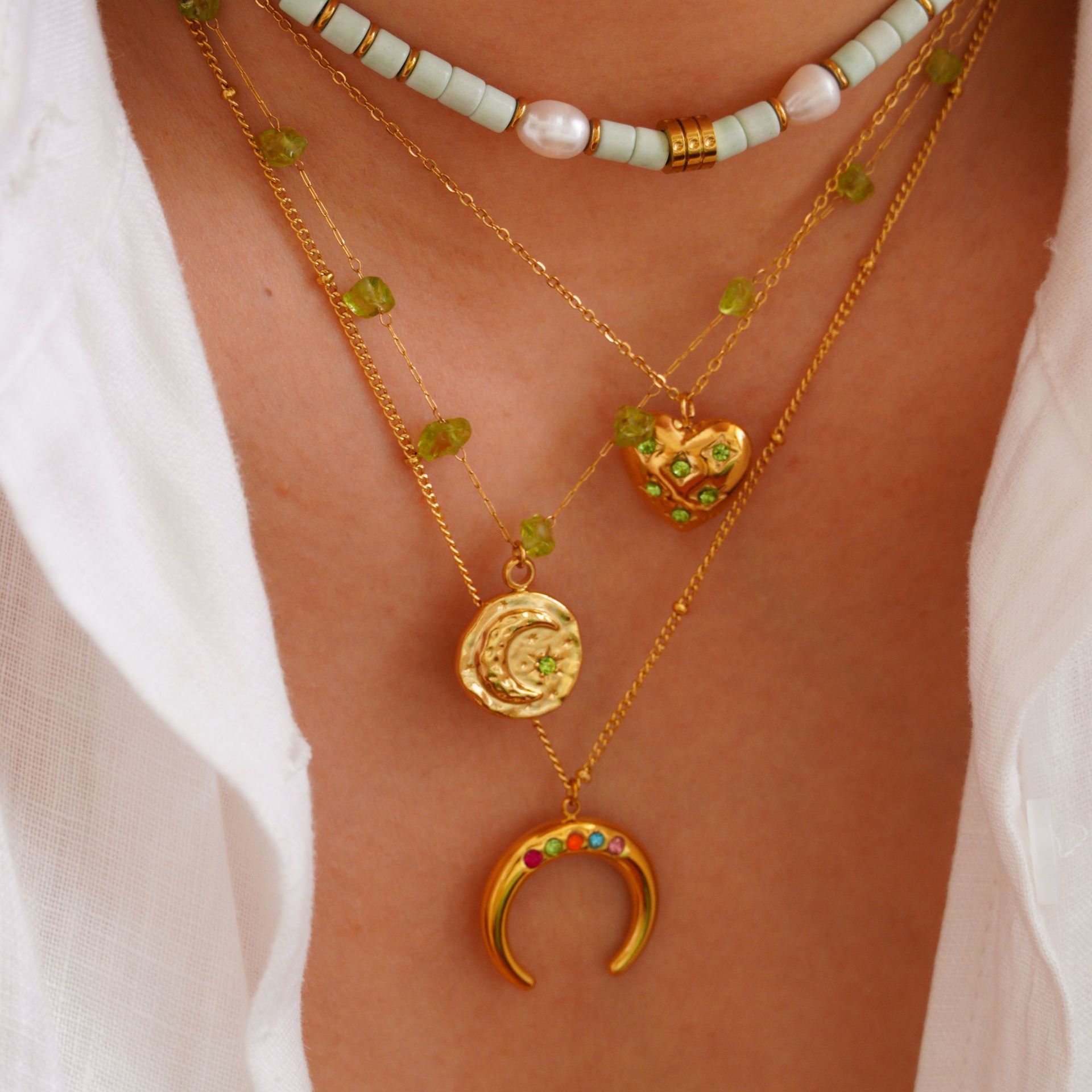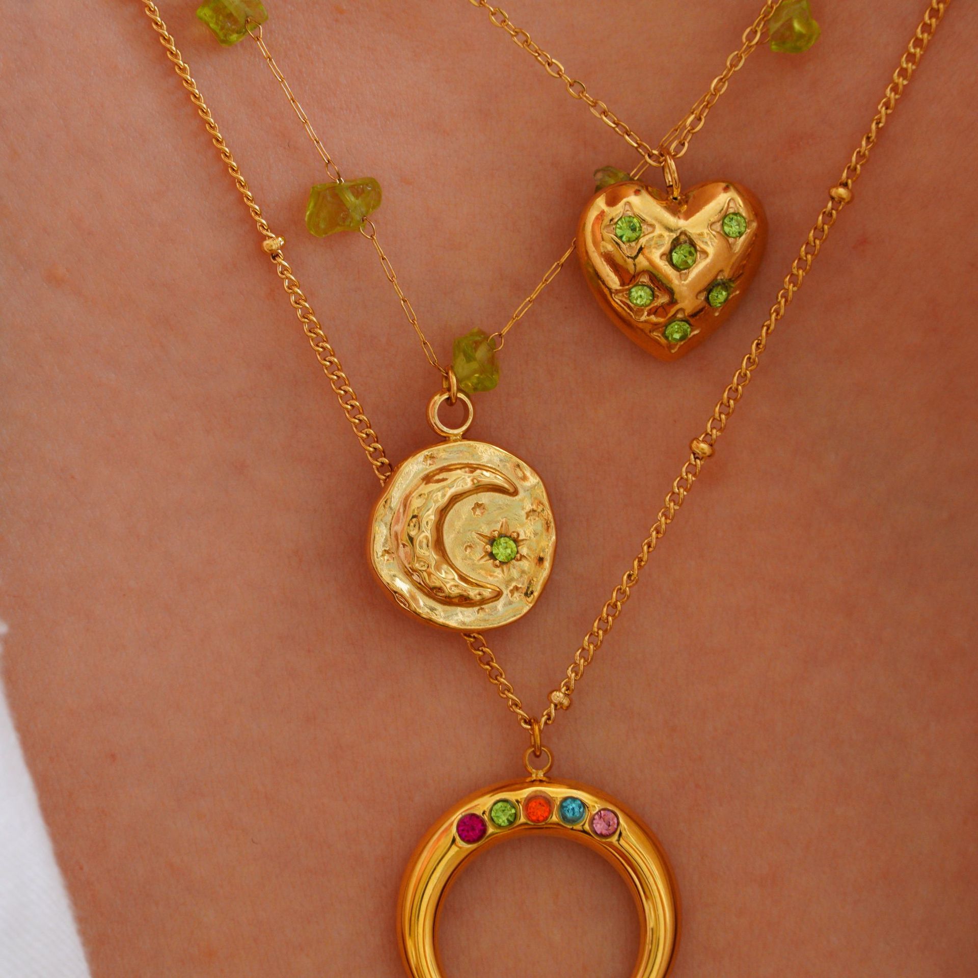 European and American Ins Fashion Light Luxury Peridot Stacked Wear Green Diamond Stainless Steel 14K Gold Necklace Women's Simple High-end Hand
