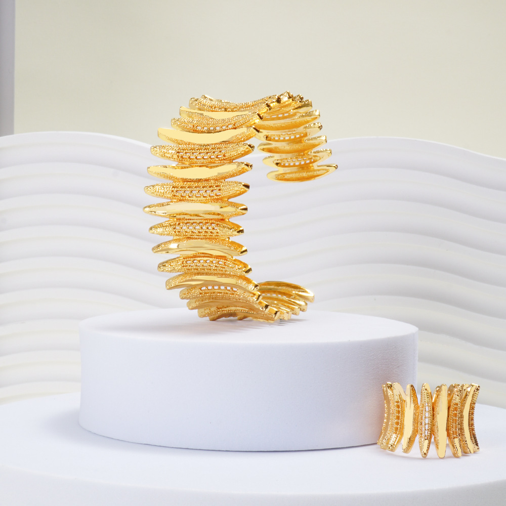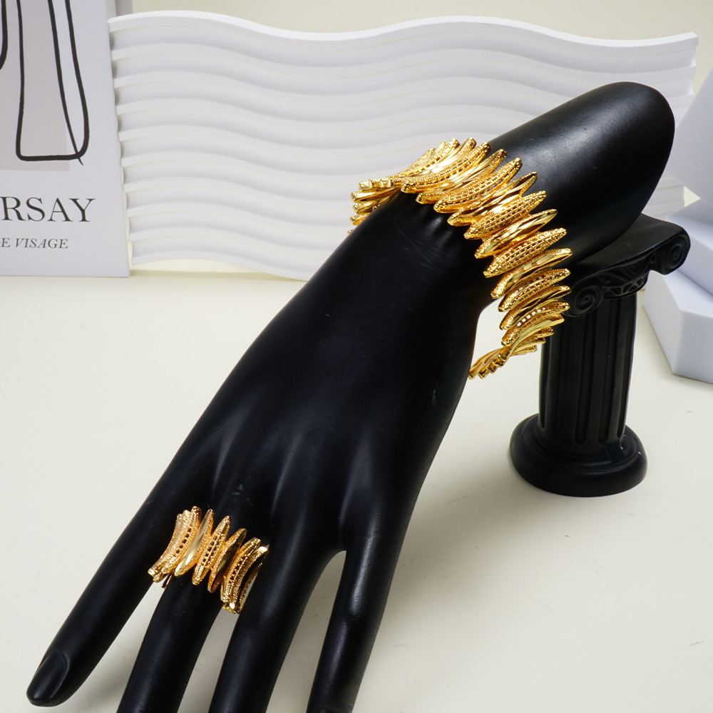 Middle East Hot Selling Brass Flower Opening Bracelet Women 24K Gold Plated Dubai India Nigeria Bride Bracelet