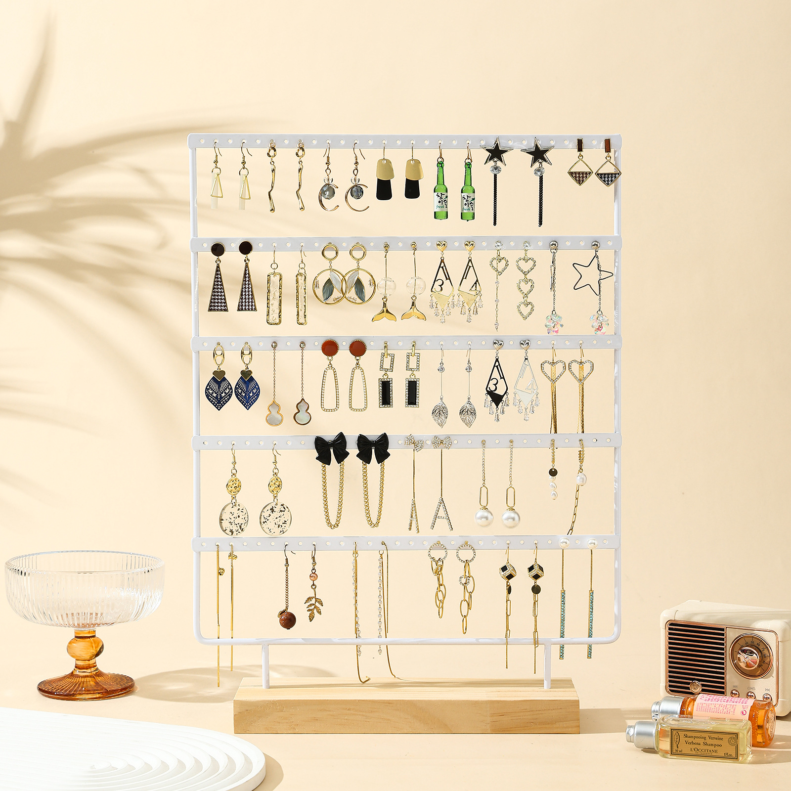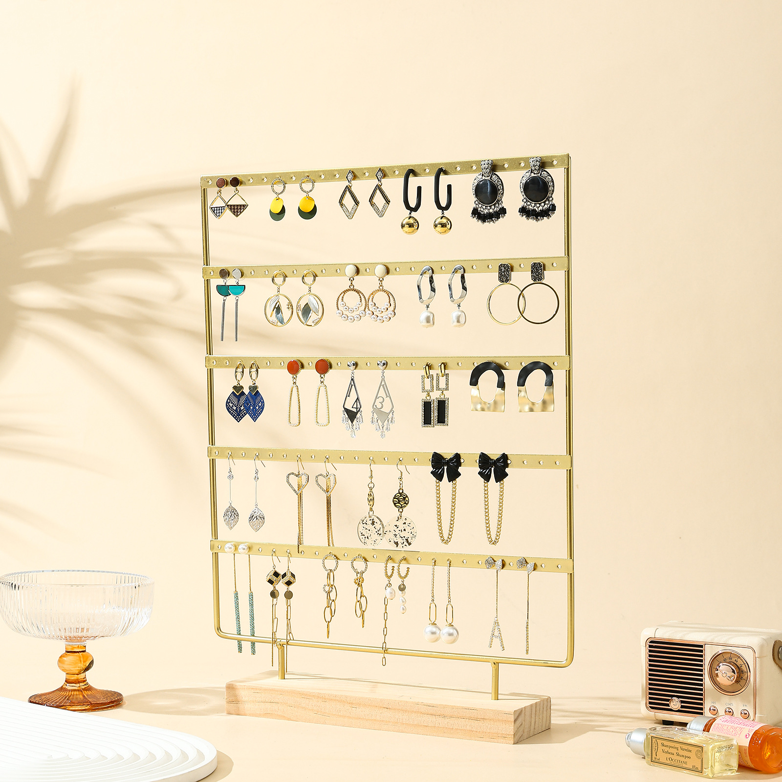 Factory direct supply wrought iron five-layer earring rack earring storage solid wood jewelry rack jewelry display rack earring rack